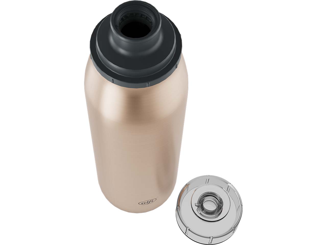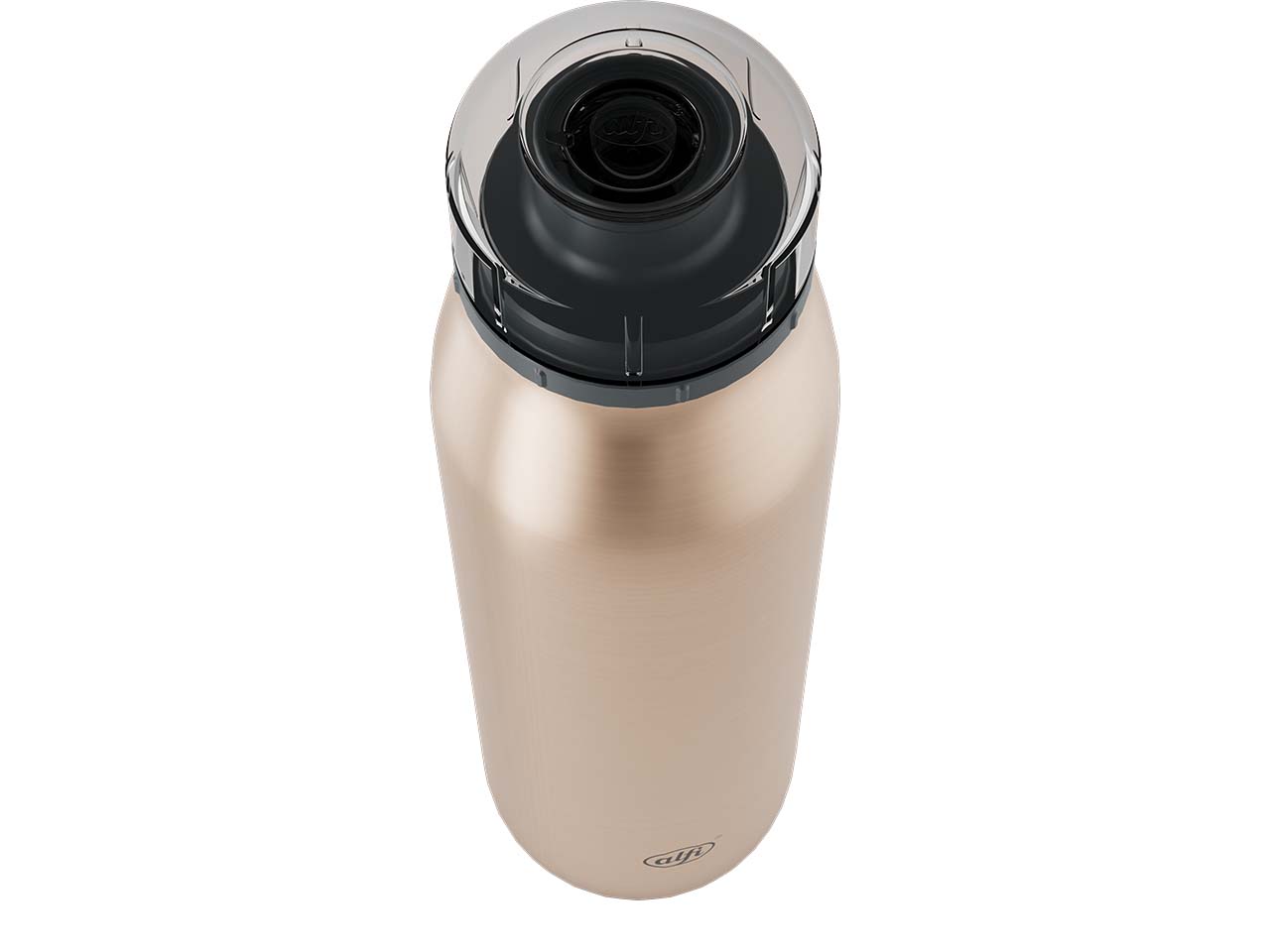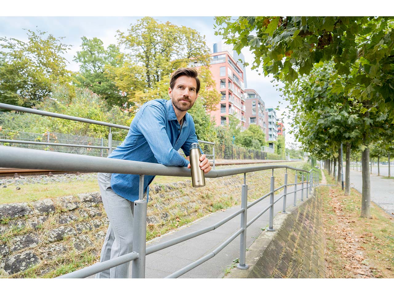 Stylisch, praktisch und die perfekte Alternative zu Einweg-Plastikflaschen: Die Isolier-Trinkflasche aus schlag- und bruchfestem Edelstahl hält Getränke bis zu 12 Stunden heiß und bis zu 24 Stunden kalt. Dabei gestaltet sich das Trinken mit dem Free-Flow-Trinksystem und dem intuitiven Schraubverschluss besonders komfortabel. Die Trinkflasche ist selbst bei kohlensäurehaltigen Getränken absolut dicht. Sie ist fruchtsäurebeständig und so auch für leckere Fruchtsäfte geeignet. Die spülmaschinengeeignete Trinkflasche ist geschmacksneutral.