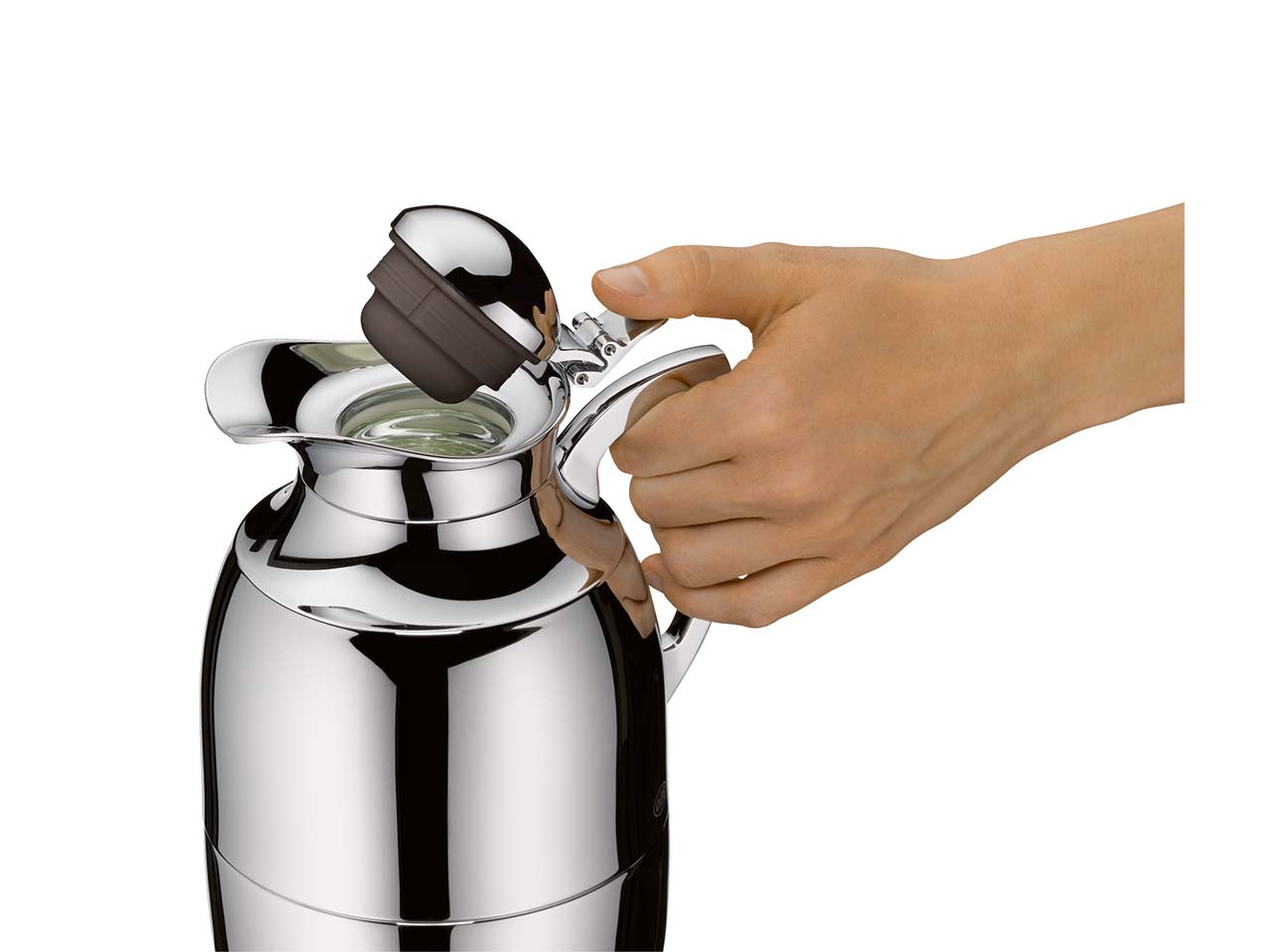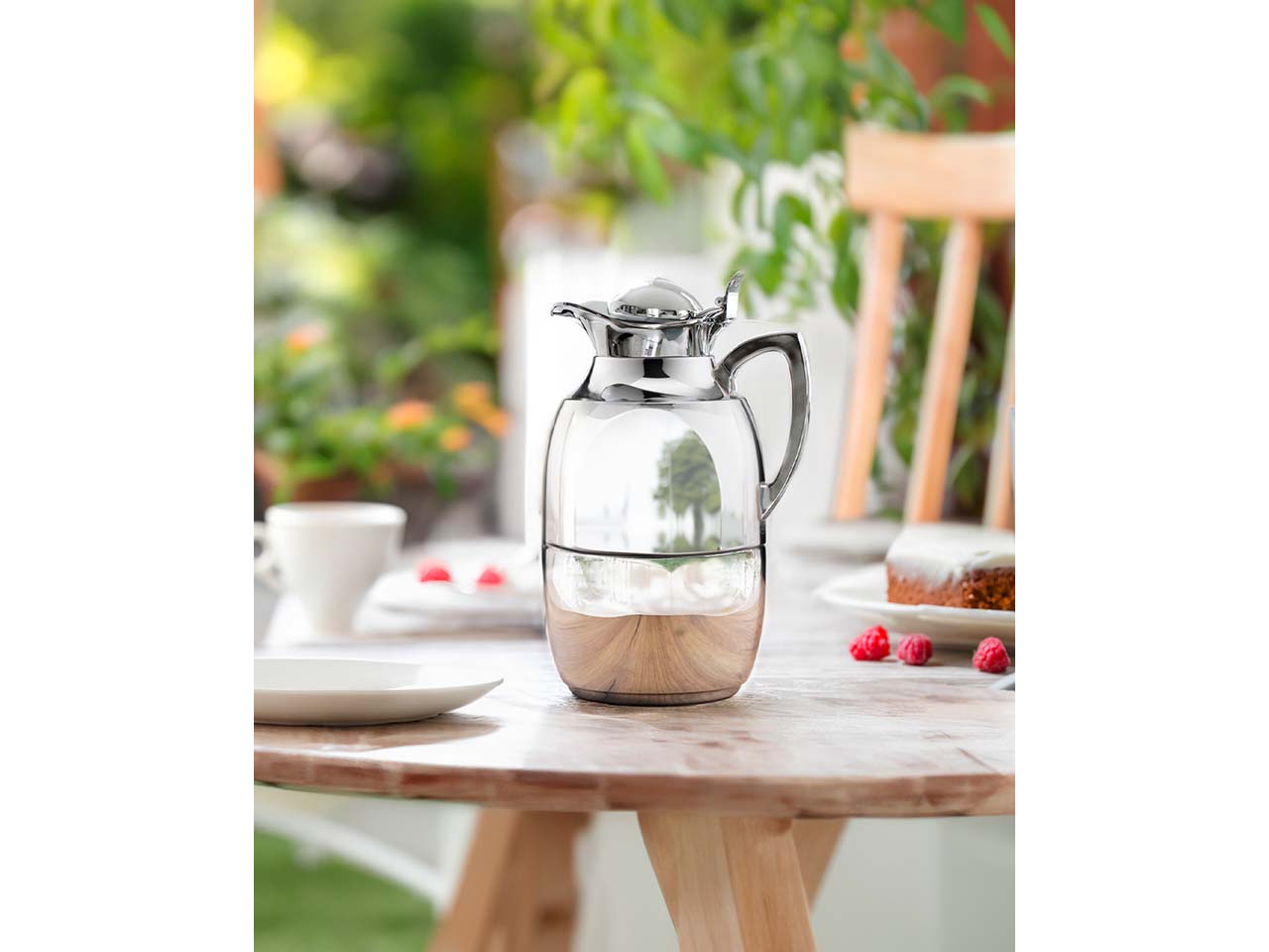 Qualität, die sich in jedem Detail zeigt: Die Isolierkanne von alfi ist ein stilvolles Meisterwerk, das in Verarbeitung, Funktionalität und Design überzeugt. Der hochwertige Edelstahl bildet die Basis und sorgt dafür, dass die edle Kanne langlebig und strapazierfähig ist. Die Isoliereigenschaften entstehen durch den Hartglaseinsatz. Getränke bleiben in der Kanne bis zu 12 Stunden heiß und 24 Stunden kalt. Die Isolierkanne hat ein locker aufliegendes Scharnier-Deckelsystem und lässt sich komfortabel mit einer Hand ausgießen. Mit einem Fassungsvermögen von 1 l.