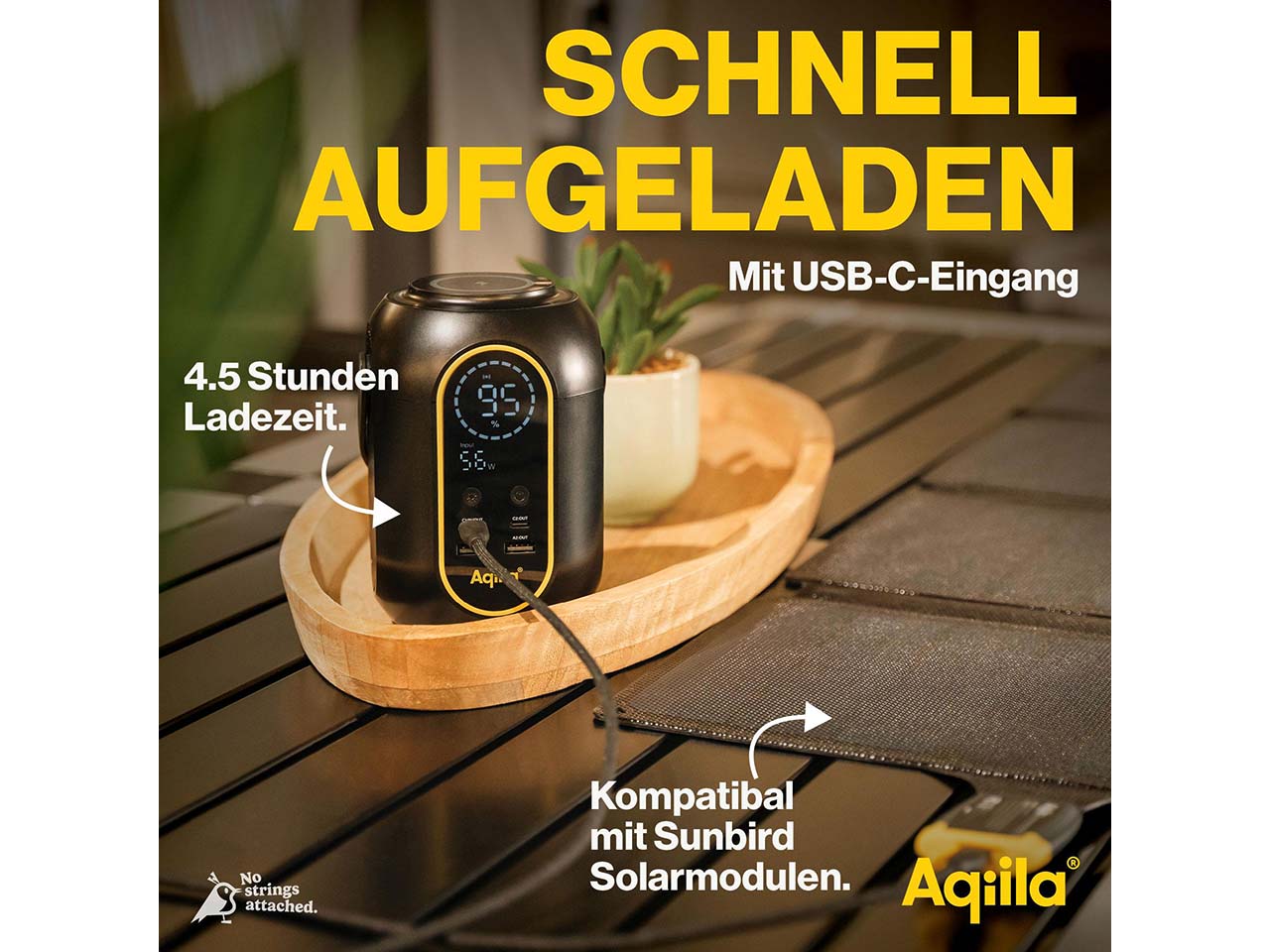 Ja, die Aqiila Powerbird S140 kann grundsätzlich mit einem 100W 18V Solarpanel aufgeladen werden.Ideal ist eine 20V-Ausgabe über USB-C mit Power Delivery für schnelles Laden. Wenn dein Panel keinen USB-C-Ausgang hat, kann ein Solarladeregler mit USB-C-Ausgang helfen.