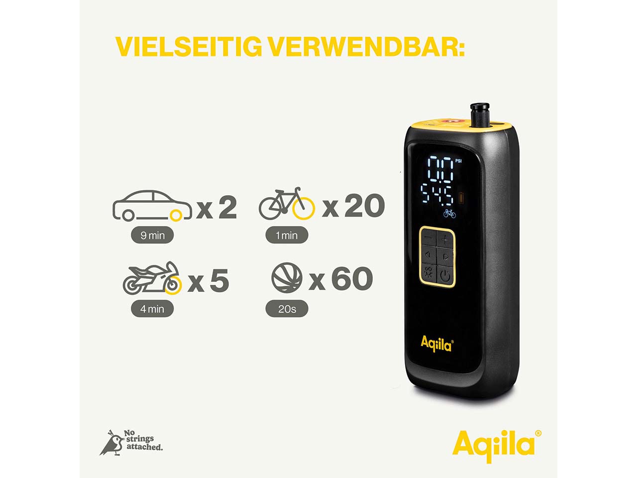 Perfekter Druck für die Reifen ist mit dieser tragbaren Pumpe ein Kinderspiel. Der elektrische Kompressor lässt sich noch leichter und bequemer bedienen als herkömmliche Pumpen. Einfach an Auto, Motorrad, Fahrrad oder Bällen anbringen, gewünschten Druck einstellen und schon geht es los. Das Gerät erkennt den Stromdruck automatisch und stellt sich ab, sobald der eingegebene Druck erreicht ist. Es stehen vier Presets und ein benutzerdefinierter Modus zur Verfügung. Praktisch: Der Schlauch lagert in der Pumpe selbst, sodass sie kaum Platz braucht. Ideal für Reisen, Ausflüge und den Alltag.