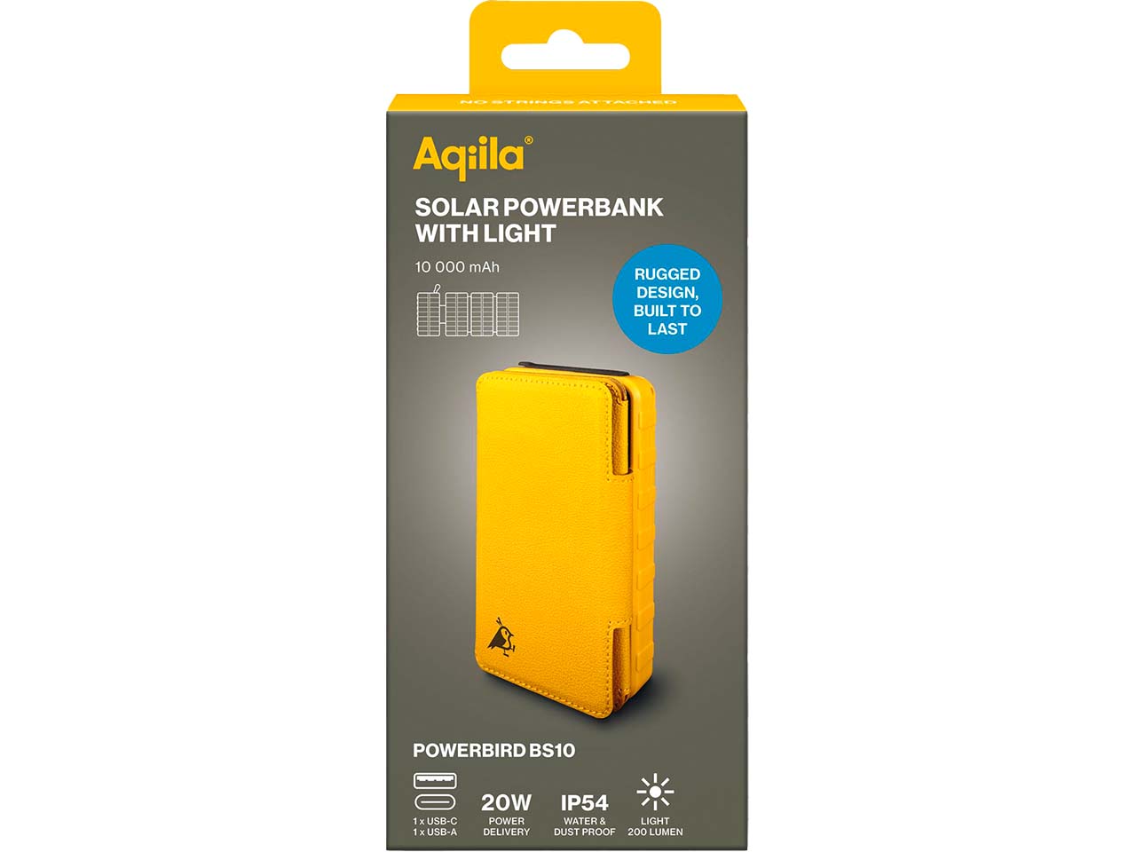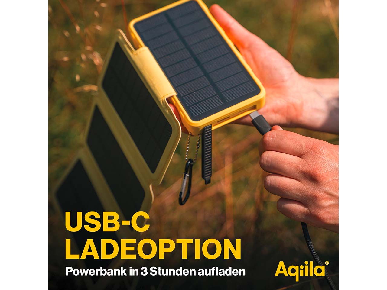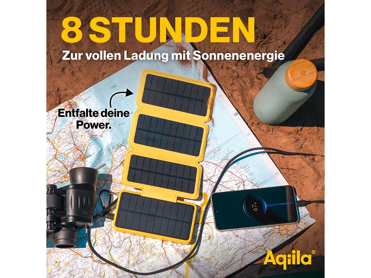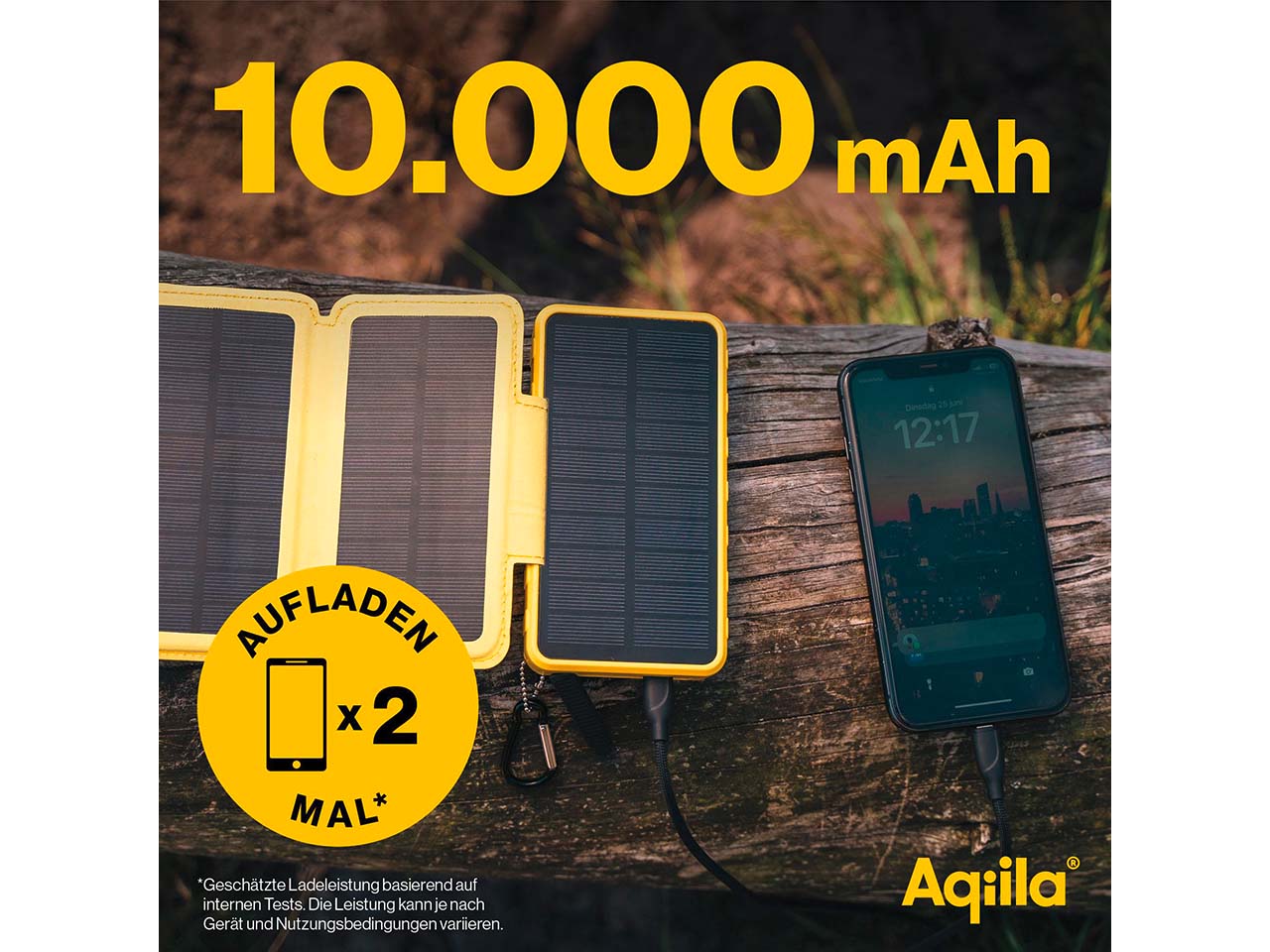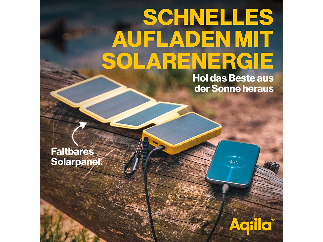 Aqiila Powerbank mit mehrfach ausklappbarem Solarpanel "Powerbird BS10"