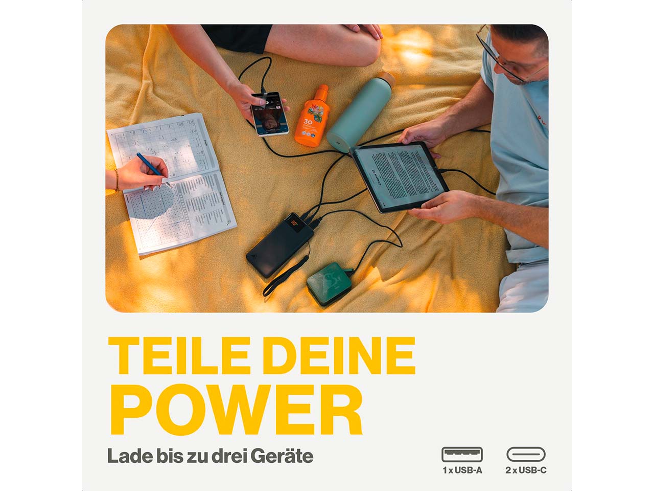 - Leistungsstarke, schnelle Powerbank mit 20.000 mAh