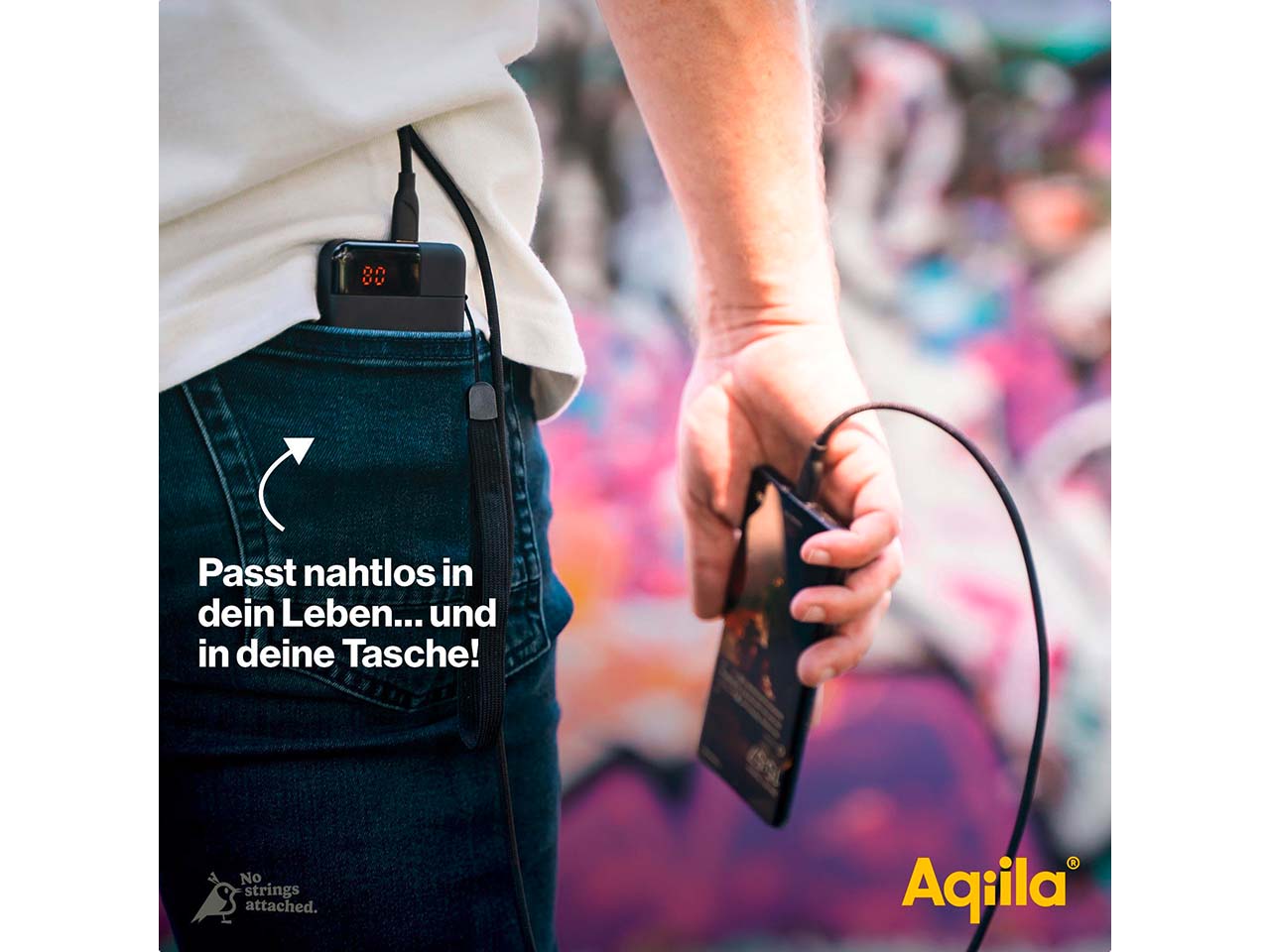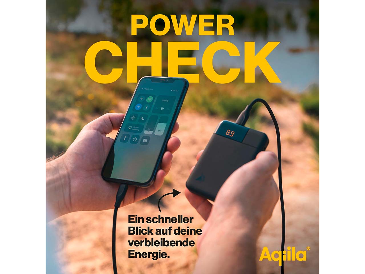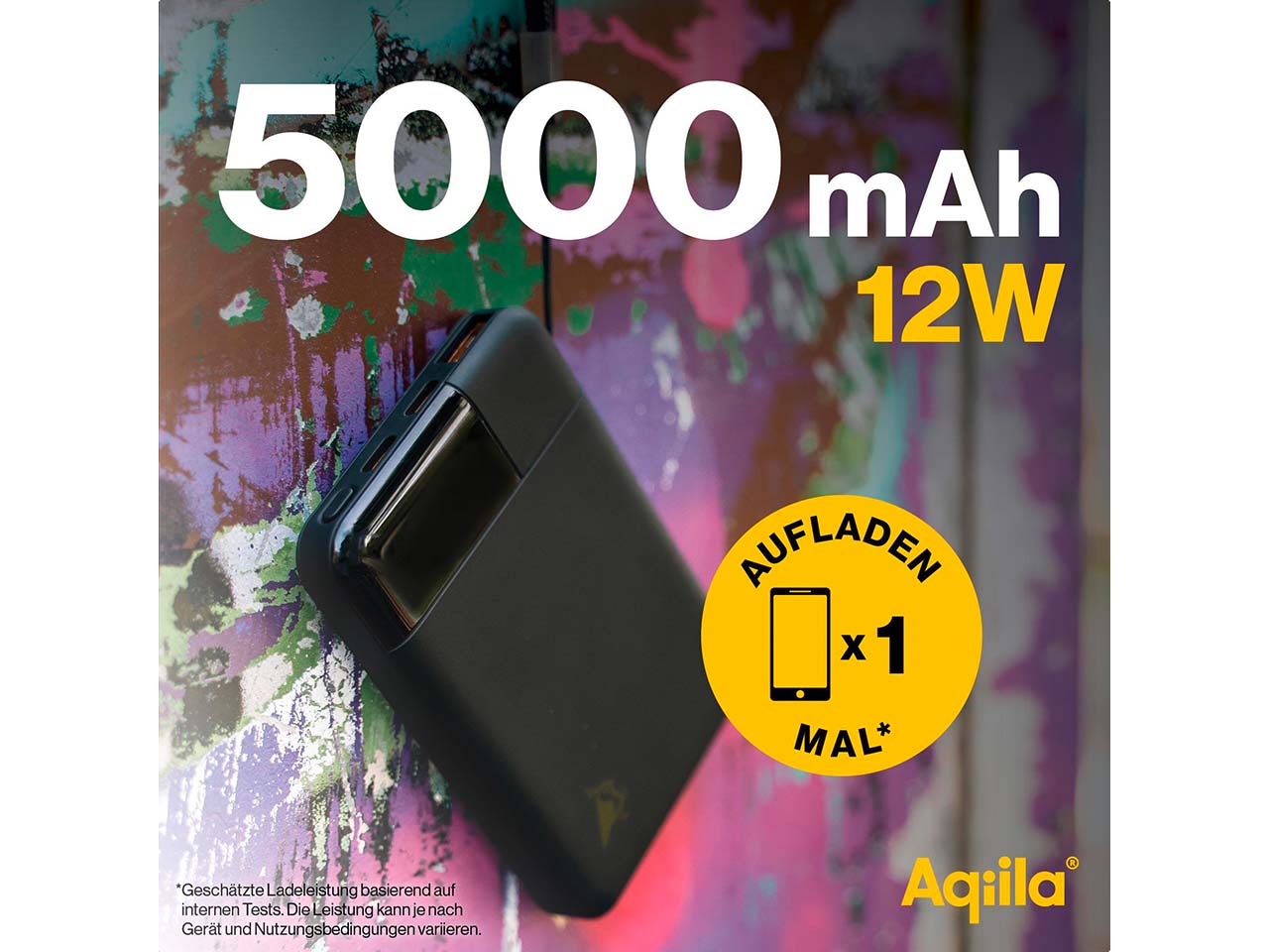 Power für Smartphone und Co.: Die Powerbank mit 5.000 mAh ist so kompakt, dass sie locker in jede Jacken- und Hosentasche passt. Sie lädt bis zu vier Geräte gleichzeitig auf. Innerhalb von 30 Minuten kann ein Smartphone um 30 % aufgeladen werden. Das praktische Trageband ermöglicht ein komfortables Tragen der Powerbank.