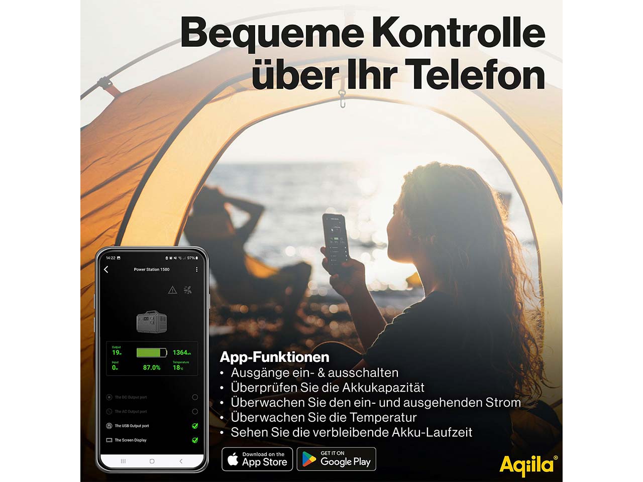 Strom, wo man gerade ist! Ob im Wohnwagen, im Schuppen, bei der Party im Garten oder bei der Feldarbeit: Die Powerstation ist eine zuverlässige, leistungsstarke Stromquelle, die Geräte auflädt und betreibt. Es stehen zahlreiche Ein- und Ausgänge wie USB oder herkömmliche Steckdosen zur Verfügung. Die Stromquelle funktioniert wie eine Powerbank, bietet aber viel mehr Flexibilität und Leistung. Es können selbst Geräte wie Bohrer, Fön oder Auto-Kühlschränke über die Powerstation betrieben werden. Die sechs integrierten Schutzsysteme gewährleisten eine reibungslose, sichere Nutzung. Über eine App kann das Gerät überwacht und gesteuert werden.