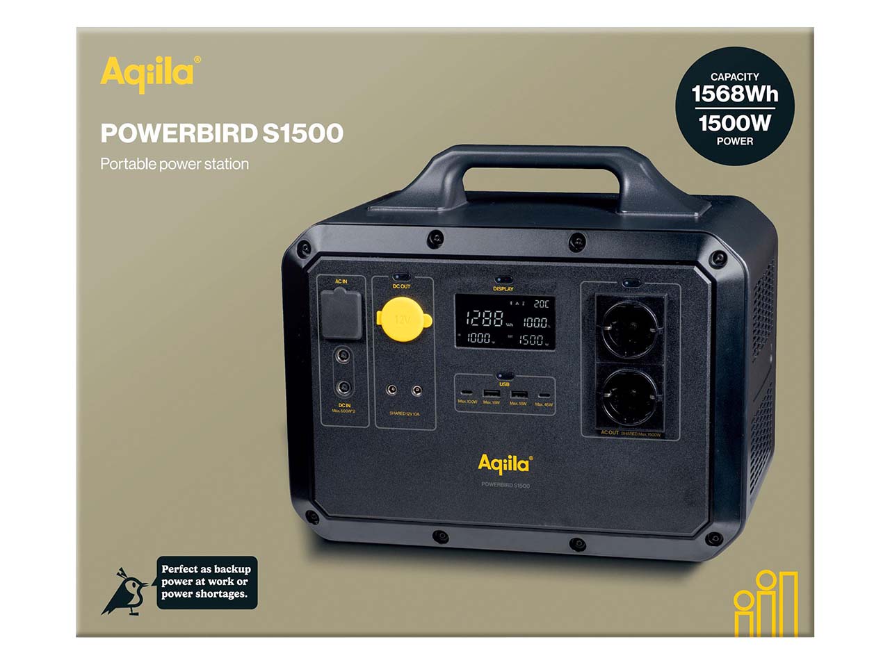 | Lieferumfang: | Powerstation "Powerbird S1500", AC Ladegerät, 12 V Ladegerät, Bedienungsanleitung |