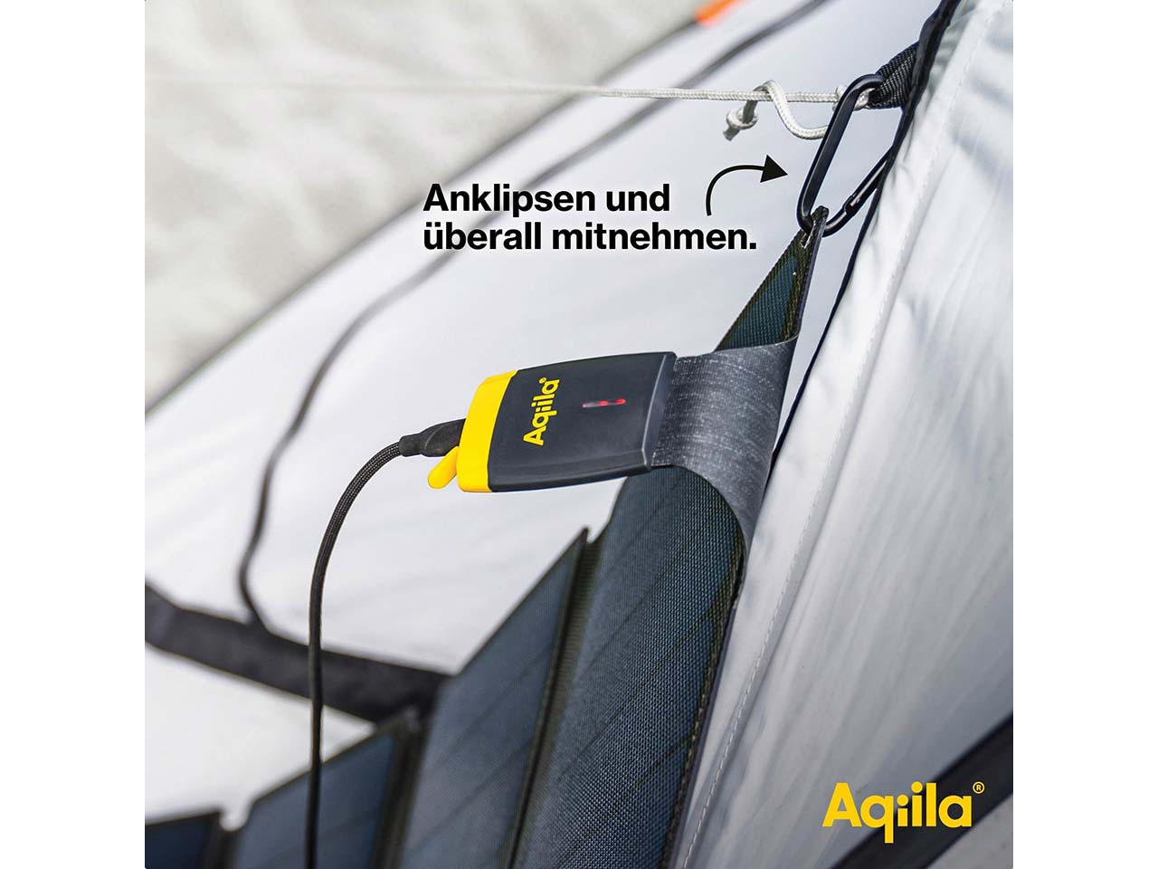 | Lieferumfang: | Solarladegerät, 2 Karabinerhaken, USB-C - USB-A Adapter |