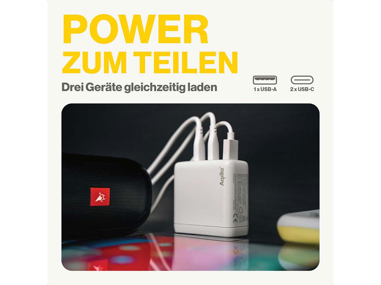 - Mit Ausgängen für USB-C und USB-A