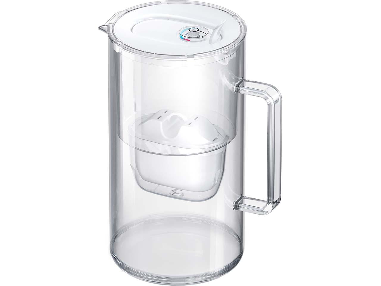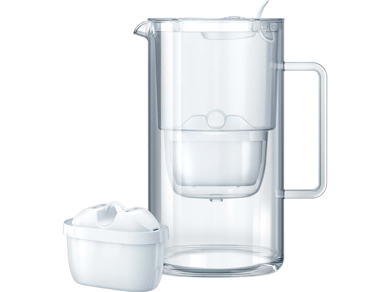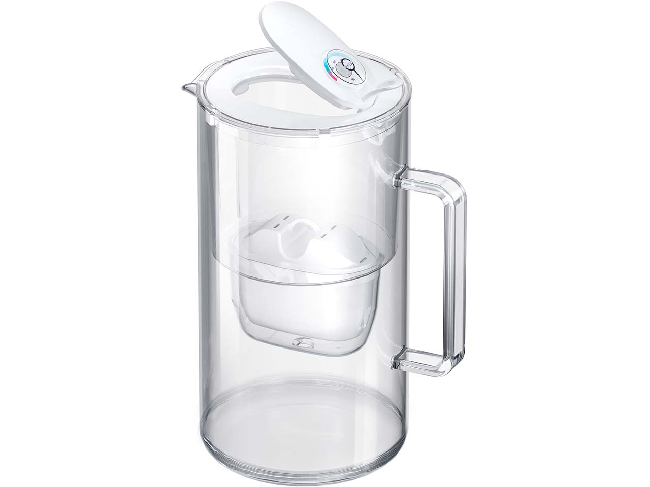 Klares, köstliches Wasser aus einer Filterkanne der Extraklasse: Die Glas-Wasserfilterkanne von AQUAPHOR begeistert auf den ersten Blick mit ihrem erstklassigen Design, zeichnet sich aber vor allem durch die Funktionalität aus. Die mitgelieferte Filterkartusche sorgt dafür, dass Schadstoffe aus dem Wasser entfernt und Härtebildner reduziert werden. Das Wasser wird dadurch weicher, was gleich mehrere Vorteile mit sich bringt: Geruch und Geschmack von Tee oder Kaffee werden nicht verfälscht und Haushaltsgeräte leben länger, da weiches Wasser die Bildung von Kalkstein reduziert. Der pH-Wert wird dabei nur minimal beeinflusst: Die Kombination von Aktivkohle, AQUALEN®-Fasern und Ionenaustauschharz senkt den Wert weniger als Vergleichsprodukte und verhindert, dass er in einen sauren Bereich fällt. Ergebnis: Das Wasser schmeckt besser und ist reiner! Die Kanne besteht aus hochwertigem Glas, ist spülmaschinengeeignet und hilft dabei, Plastik einzusparen. Wasser muss nicht mehr in PET-Flaschen gekauft werden, da sich Leitungswasser aufbereiten lässt. Die Wasserfilteranzeige funktioniert ganz ohne Batterien. Hinweis: Der Filter sollte rund alle 4 Wochen ausgetauscht werden! Fassungsvermögen von 2,5 l.