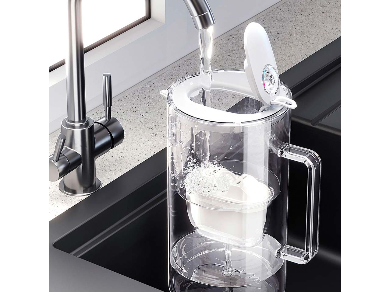 Die Kombination der Komponenten macht bei dem Kannenfilter den Unterschied: Schwermetallionen wie Eisen, Kupfer, Nickel und Blei können installationsbedingt in Hauswasserleitungen enthalten sein und werden effektiv herausgefiltert. Das gilt auch für geschmacksstörende Stoffe wie Chlor.