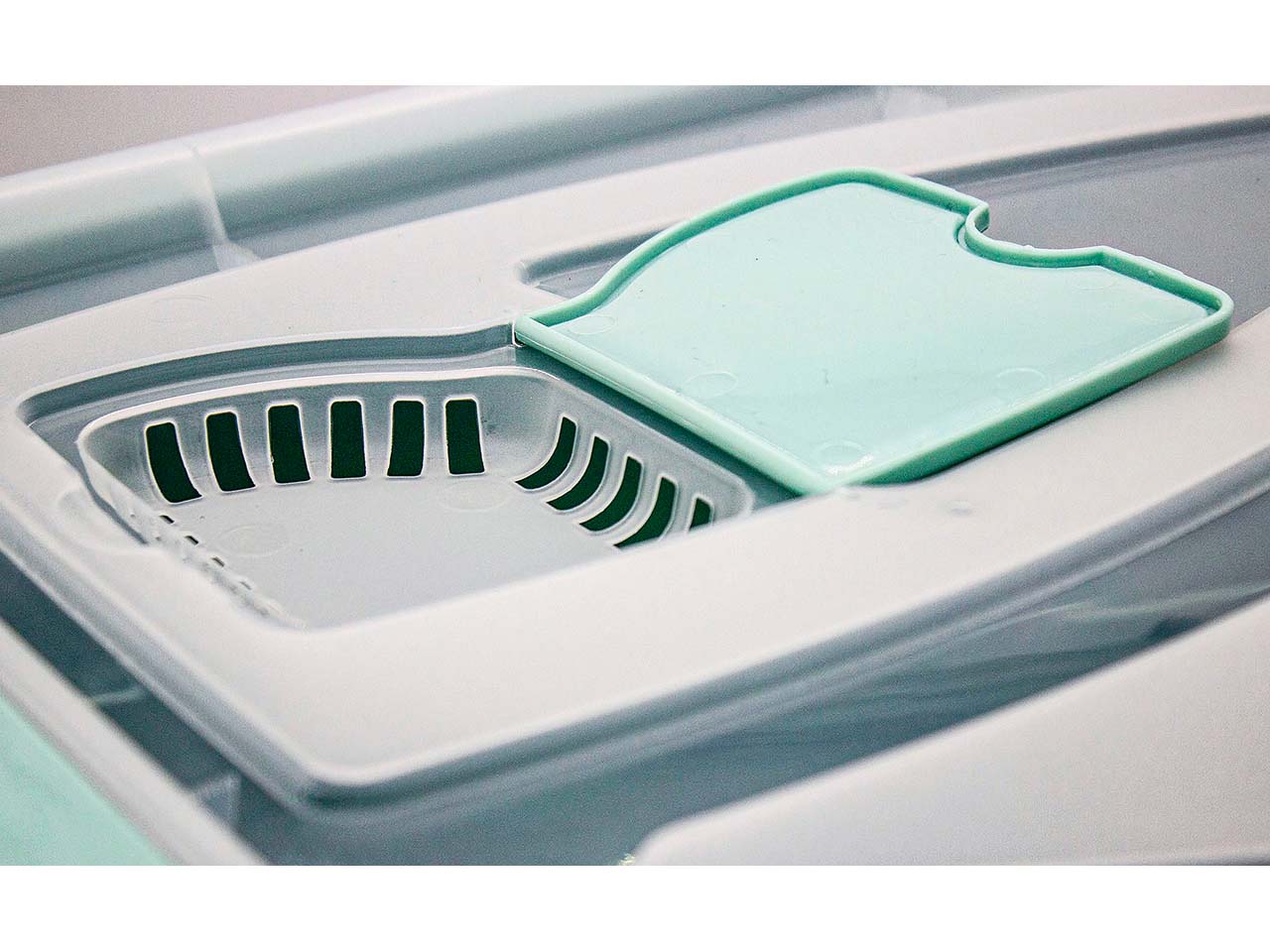 Das Produkt besteht aus sortenreinem Polypropylen, wodurch es prinzipiell sehr gut recyclingfähig ist. Durch das langlebige Material ist sichergestellt, dass das Produkt über einen langen Zeitraum genutzt werden kann. Die Herstellung erfolgt in Europa.