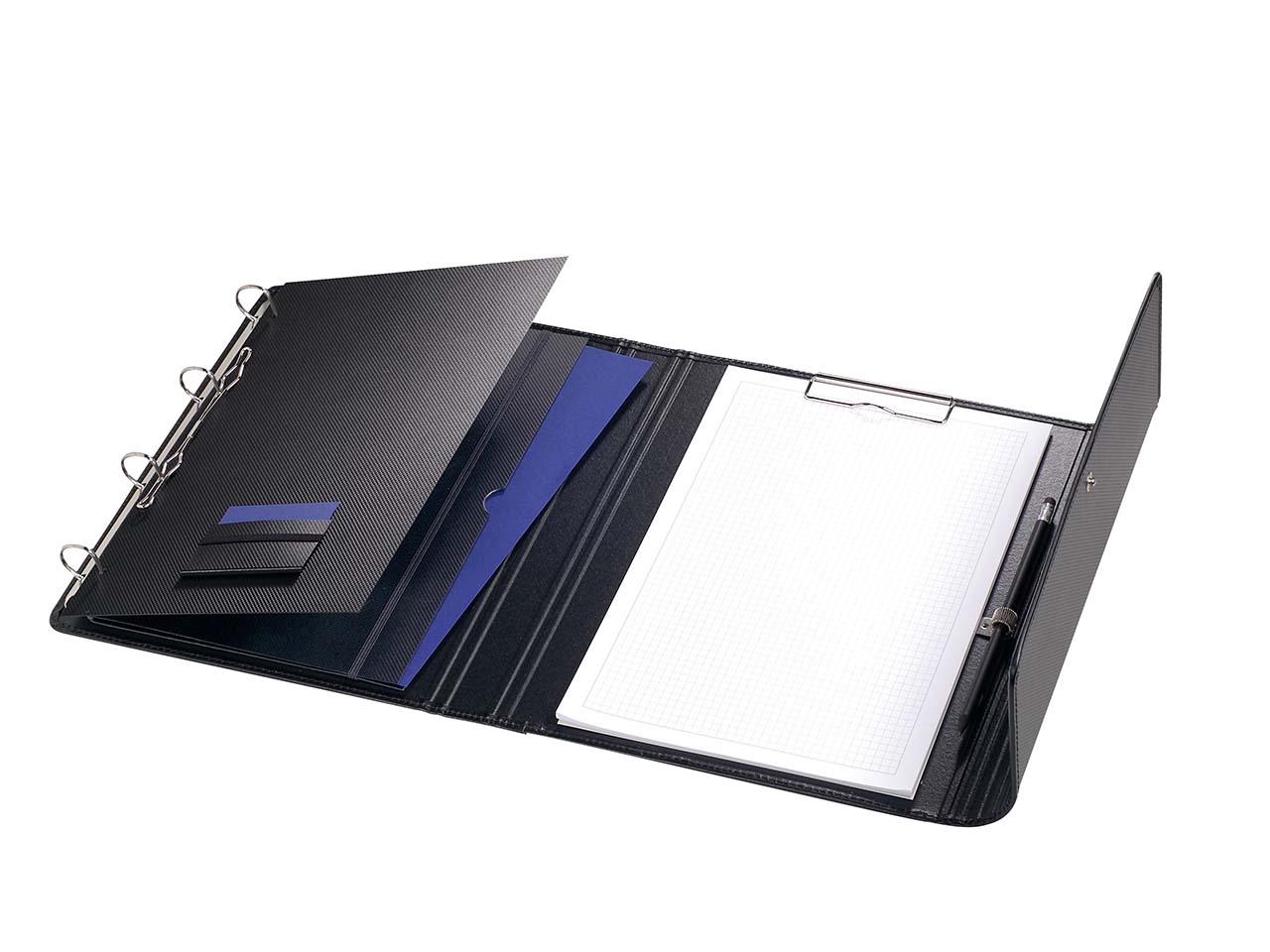 | Ausführung: | mit Visitenkartenschlitz, stabiler Blockklemme, 4-Ring-Mechanik und Zusatzfach |