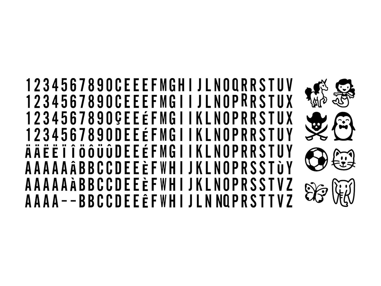 | Lieferumfang: | Textil-Stempel, Tastatur (Buchstaben, Zahlen und Sonderzeichen), Pinzette, Textilfarbe, Aufbügelband |