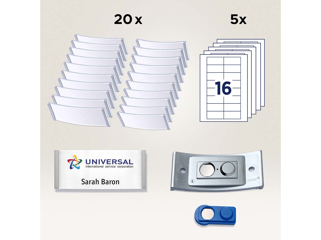 Auf der Tagung, beim Seminar, im Gesundheitswesen oder in der Gastronomie: Diese Namensschilder sitzen perfekt und sorgen für einen professionellen Auftritt. Das Komplettset ermöglicht eine flexible Selbstbeschriftung, sodass die Namensschilder ganz vielseitig verwendet werden können. Die Druckbogen eignen sich für alle gängigen Drucker. Dank Kraftmagnet-Befestigung halten die Namensschilder auf jeder Kleidung ganz ohne zu verrutschen. Das Edelstahldesign verschafft den Namensschildern eine edle Optik.