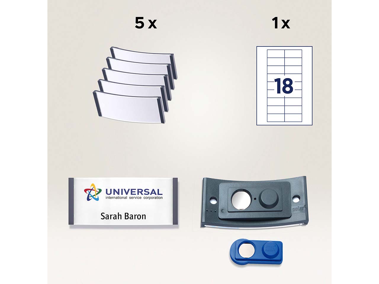 Namensschilder-Komplettset für den flexiblen Einsatz im Gewerbe, auf Veranstaltungen und Messen! Dank Selbstbeschriftung können die Schilder ganz vielseitig eingesetzt werden. Sie wirken besonders modern und edel. Die Kraftmagnet-Befestigung sorgt dafür, dass die Namensschilder perfekt an der Kleidung sitzen. Das durchdachte Design mit patentiertem System hält die Schilder auf jedem Stoff ohne Verrutschen.