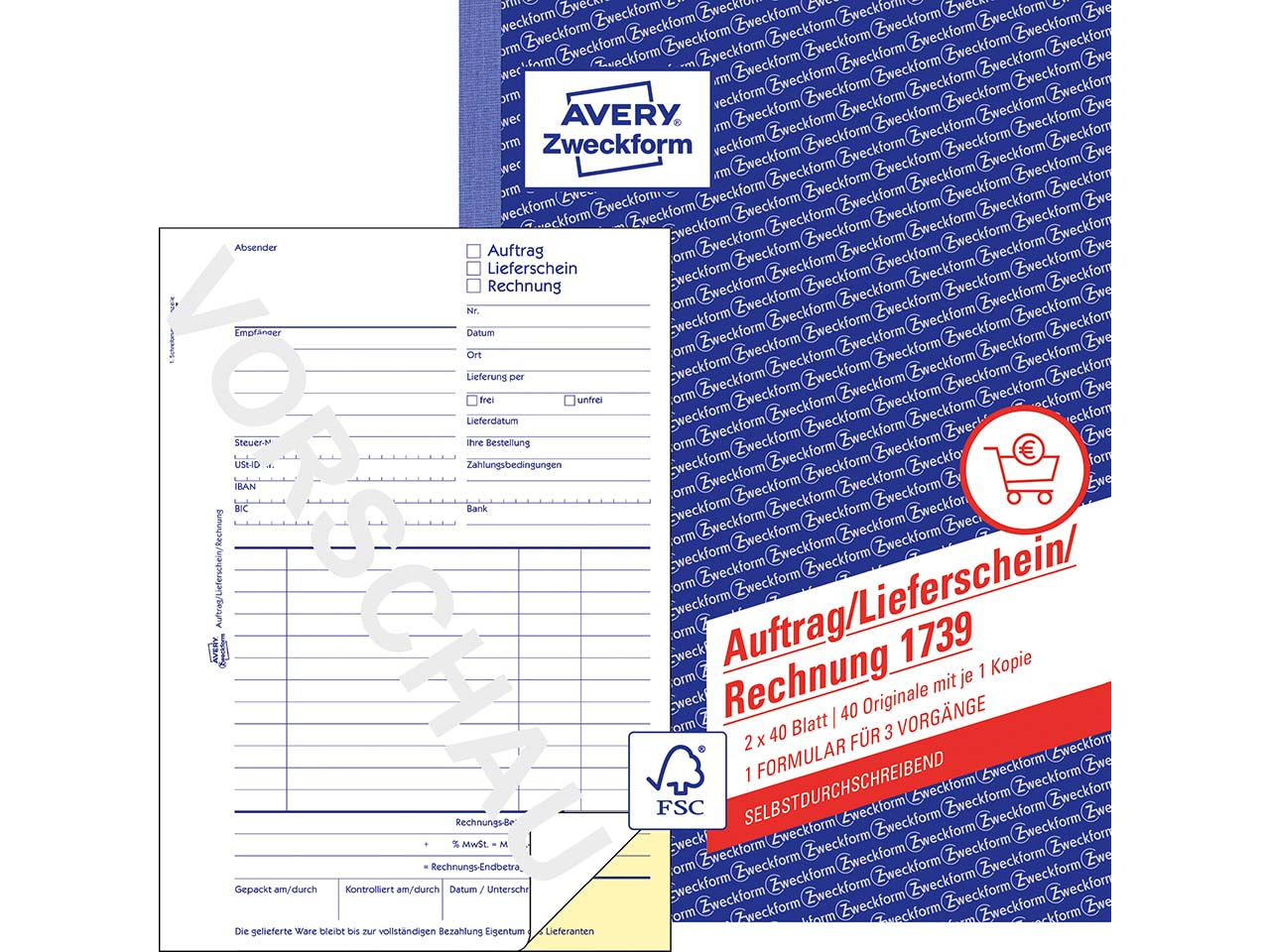 Avery Zweckform Formularbuch "1739" Auftrag/Lieferschein/Rechnung