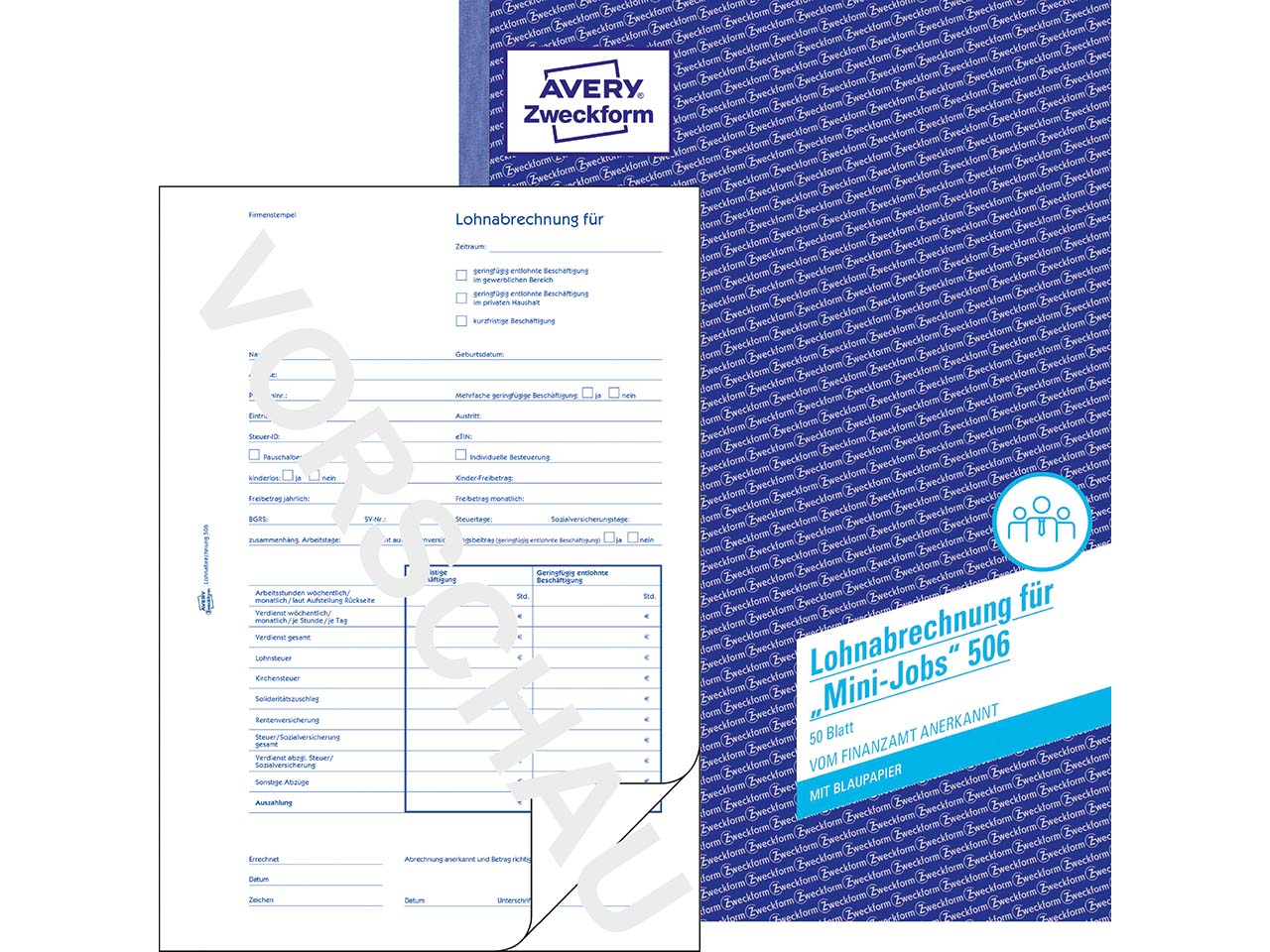 Avery Zweckform Formularbuch "506" Lohnabrechnung Minijobs