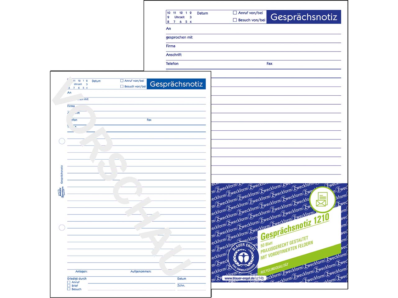 Avery Zweckform Recycling Formularbuch "1210" Gesprächsnotiz