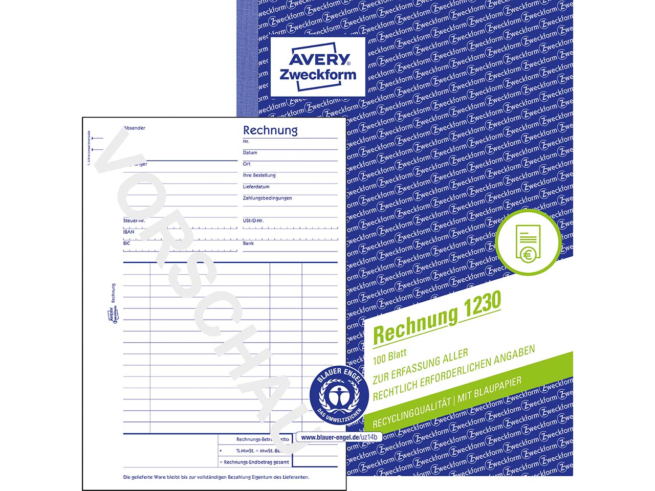 Avery Zweckform Recycling Formularbuch "1230" Rechnung