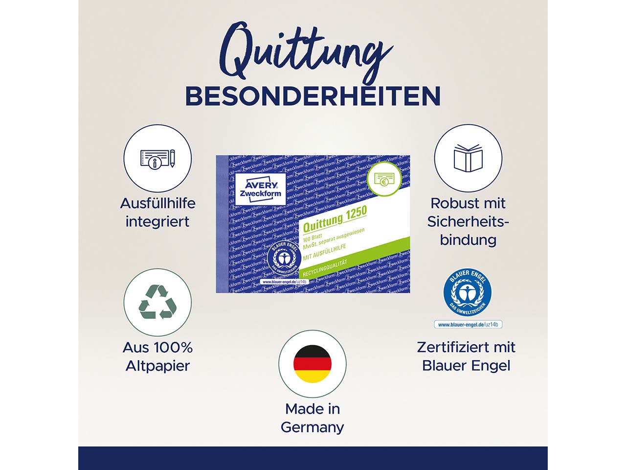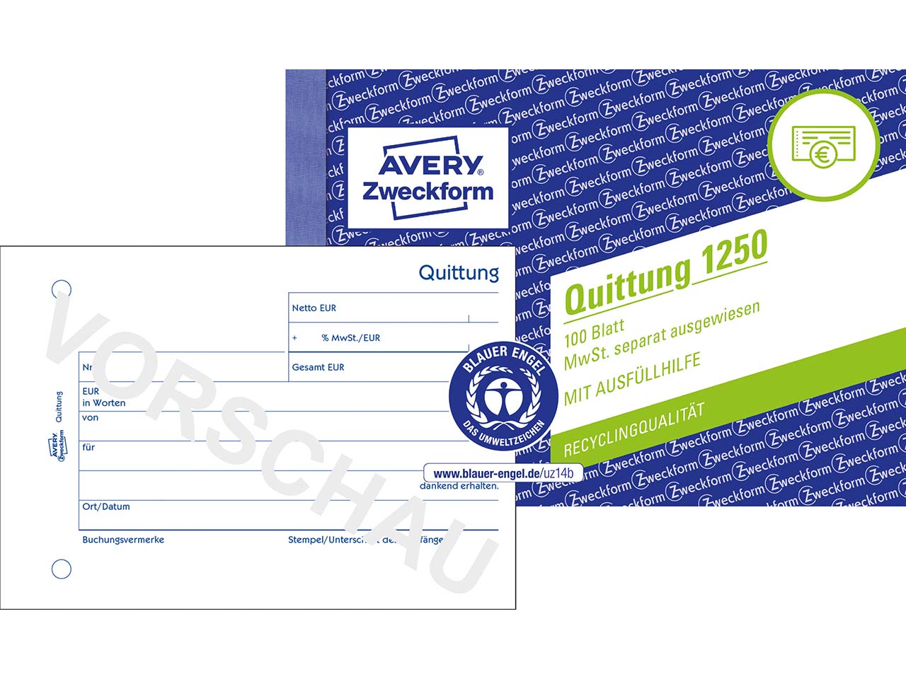 Avery Zweckform Recycling Formularbuch "1250" Quittung