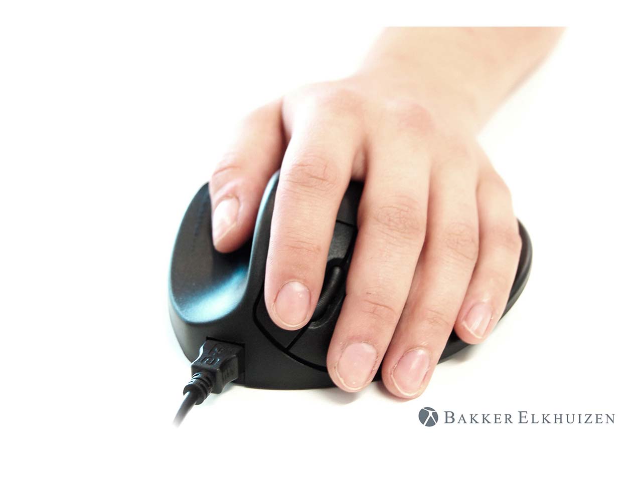 Das Produkt von BakkerElkhuizen ist in Hinblick auf Ergonomie am Arbeitsplatz entwickelt. Die Maus hat eine einzigartig ergonomische Form, die eine übermäßige Daumenbewegung verhindert. Im Gegensatz zu herkömmlichen Mäusen muss der Finger hier nicht ständig angehoben werden. Die ganze Hand liegt auf der Maus auf, was zu mehr Entspannung in der Hand führt. Für die Herstellung des Produkts werden hochwertige, langlebige Materialien verwendet. Dadurch kann das Produkt über einen langen Zeitraum benutzt werden.
