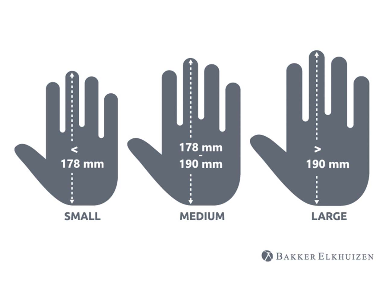 Diese ergonomische Präzisionsmaus für Linkshänder:innen von Bakker Elkhuizen passt wie ein Handschuh! Das durchdachte, auf mehrjähriger Entwicklungsarbeit beruhende Design beugt physischen Beschwerden vor und lindert sie. Die Nutzung der Maus steigert den Komfort, das Wohlbefinden und die Produktivität bei der Computer- und Laptoparbeit. Durch die spezielle ergonomische Form mit Daumenplattform entspannt die Hand. Die Tasten sind in einer Linie mit den Fingern angeordnet, sodass im Gegensatz zu herkömmlichen Mäusen nicht der Finger ständig angehoben werden muss. Eine leichte Berührung reicht aus, um die Taste zu aktivieren. Zusammen mit der leicht geneigten Handfläche sorgt die fingerstützende Computermaus so dafür, dass nur geringe Muskelaktivität in der Hand auftritt. Der Druck wird in einem natürlichen, angenehmen Winkel von 25 Grad über die ganze Hand verteilt. Eine Überlastung von Gelenken, Sehnen, Nerven und Muskeln wird verhindert. Da die Bewegung aus dem Unterarm und dem Handgelenk kommt, kann das Risiko für Karpaltunnel- und Repetitive Strain Injury Syndrom (RSI) reduziert werden. Damit die Maus optimal zur Hand passt, ist sie in drei verschiedenen Größen erhältlich. Welche Größe am besten passt, lässt sich an der Grafik erkennen.