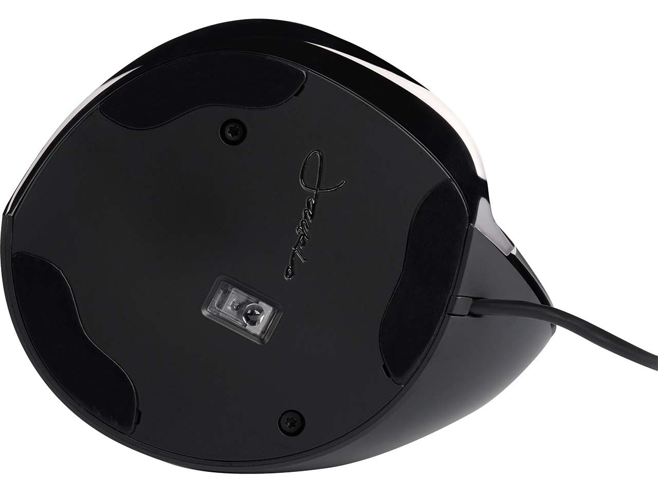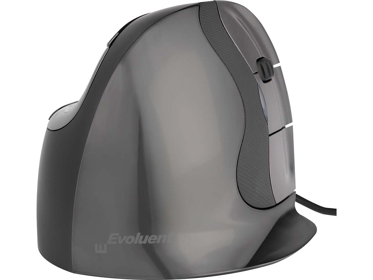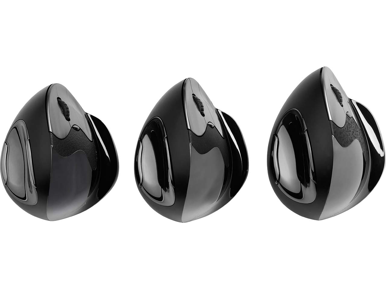 Langjährige Erfahrung und Forschung stecken in dieser Vertikalmaus mit patentiert ergonomischer Form. Diese ermöglicht die sogenannte Handschüttelposition, die Unterarm und Handgelenk entlastet. Dadurch können Schmerzen in diesen Bereichen gemindert werden. Die stilvoll designte Maus mit Kabel verfügt über programmierbare Tasten und die Zeigergeschwindigkeit ist einfach einzustellen, da sich die Taste hierfür direkt hinter dem Scrollrad befindet. Praktisch: Vier Lichter zeigen die Geschwindigkeiten von langsam bis schnell an. Um die fünf Tasten individuell zu konfigurieren, kann die Evoluent Mouse Manager Software kostenlos gedownloadet werden. Für eine optimal präzise Bewegung der Vertikalmaus ist diese mit Einkerbungen in den Tasten versehen, sodass die Fingerspitzen flach darauf ruhen. Damit die Maus optimal zur Hand passt, ist sie in drei verschiedenen Größen erhältlich. Welche Größe am besten passt, lässt sich an der Grafik erkennen.