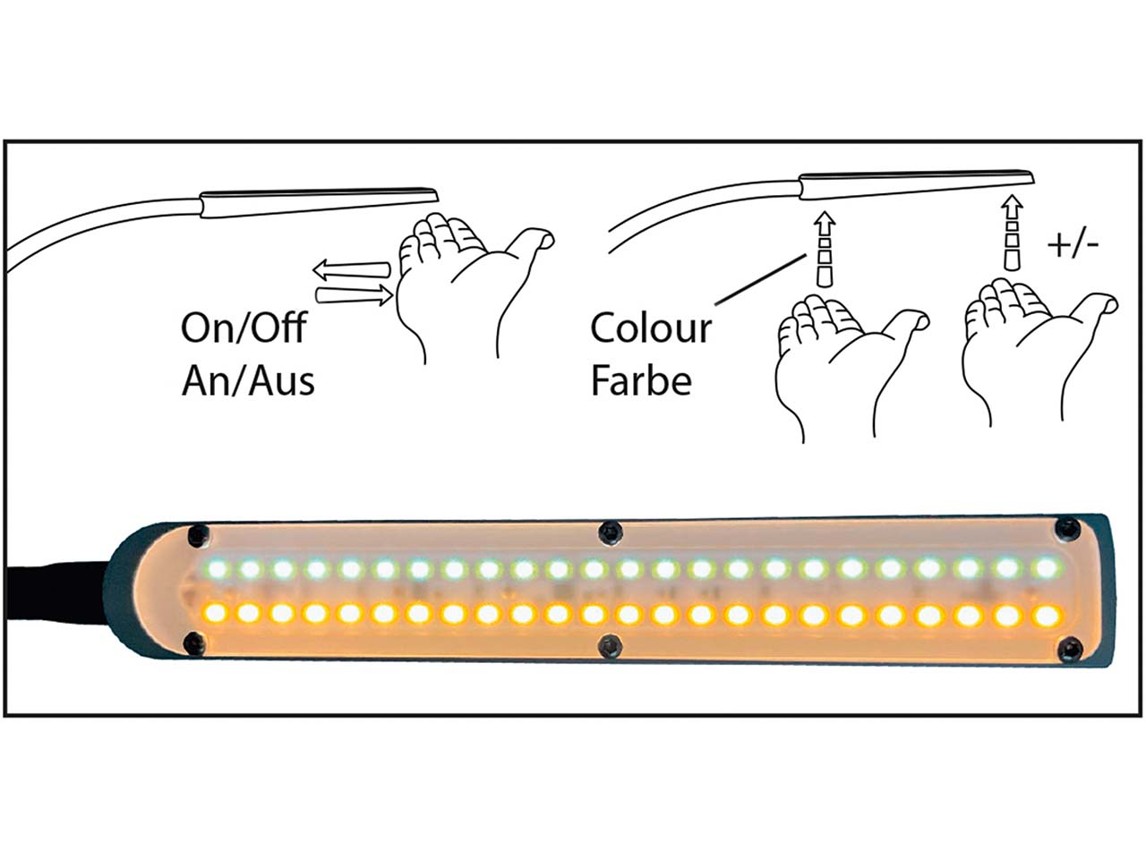 Schlanke LED-Tischleuchte mit Gestensteuerung