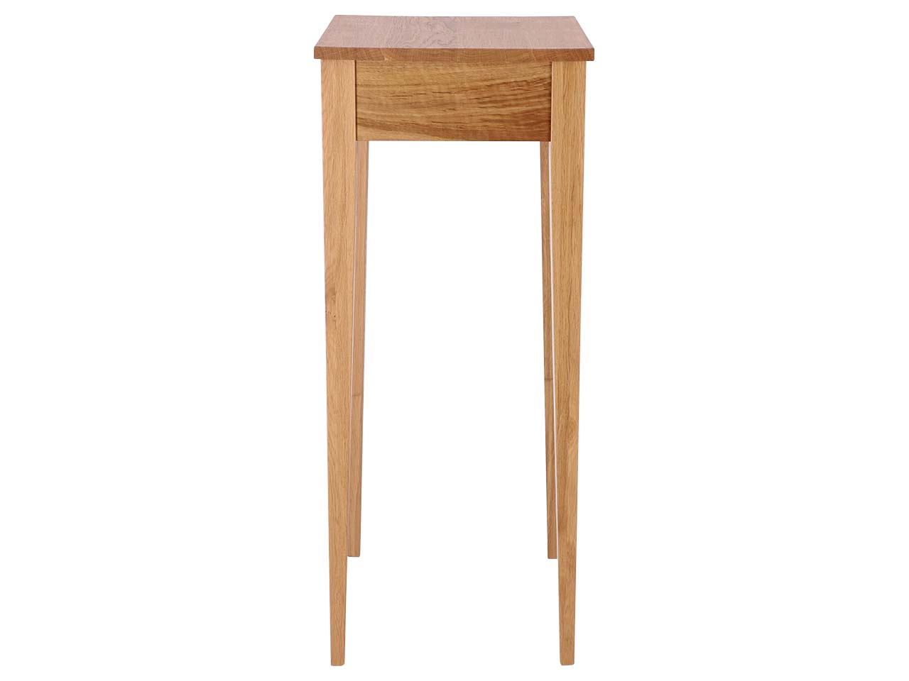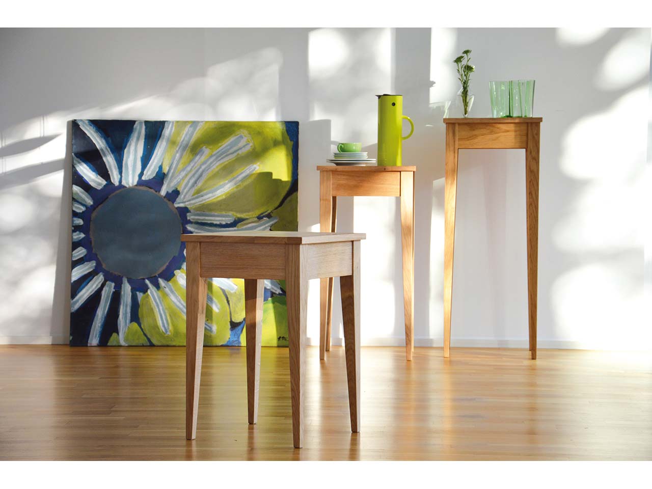 Modernes, geschmackvolles Design, das mit exzellenter Verarbeitung und stabiler Qualität überzeugt. Diese Eckdaten zeichnen den Beistelltisch "Bonny" aus. Gefertigt ist das Möbelstück aus massivem Eichenholz, das sehr langlebig ist und mit seinem rustikalen Charme Kraft und Ruhe vermittelt. Aufgrund der minimalistischen und zeitlosen Optik mit nach unten schmal zulaufenden Füßen eignet sich der Beistelltisch für jede Räumlichkeit. Er passt ins Schlaf- genauso wie ins Wohn- oder Esszimmer. Auch im Flur ist der Tisch nützlich, um zum Beispiel eine Schlüsselschale darauf zu platzieren. Durch die Oberflächenbehandlung mit Öl auf Pflanzenbasis ist das Holz besonders offenporig. B 40 x T 40 x H 100 cm.