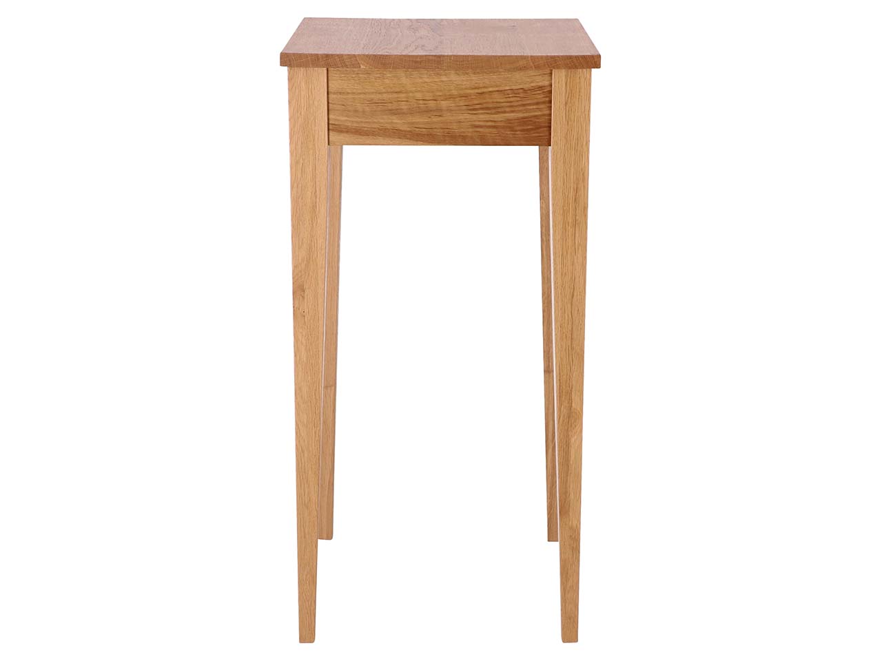 Modernes, geschmackvolles Design, das mit exzellenter Verarbeitung und stabiler Qualität überzeugt. Diese Eckdaten zeichnen den Beistelltisch "Bonny" aus. Gefertigt ist das Möbelstück aus massivem Eichenholz, das sehr langlebig ist und mit seinem rustikalen Charme Kraft und Ruhe vermittelt. Aufgrund der minimalistischen und zeitlosen Optik mit nach unten schmal zulaufenden Füßen eignet sich der Beistelltisch für jede Räumlichkeit. Er passt ins Schlaf- genauso wie ins Wohn- oder Esszimmer. Auch im Flur ist der Tisch nützlich, um zum Beispiel eine Schlüsselschale darauf zu platzieren. Durch die Oberflächenbehandlung mit Öl auf Pflanzenbasis ist das Holz besonders offenporig. B 40 x T 40 x H 80 cm.