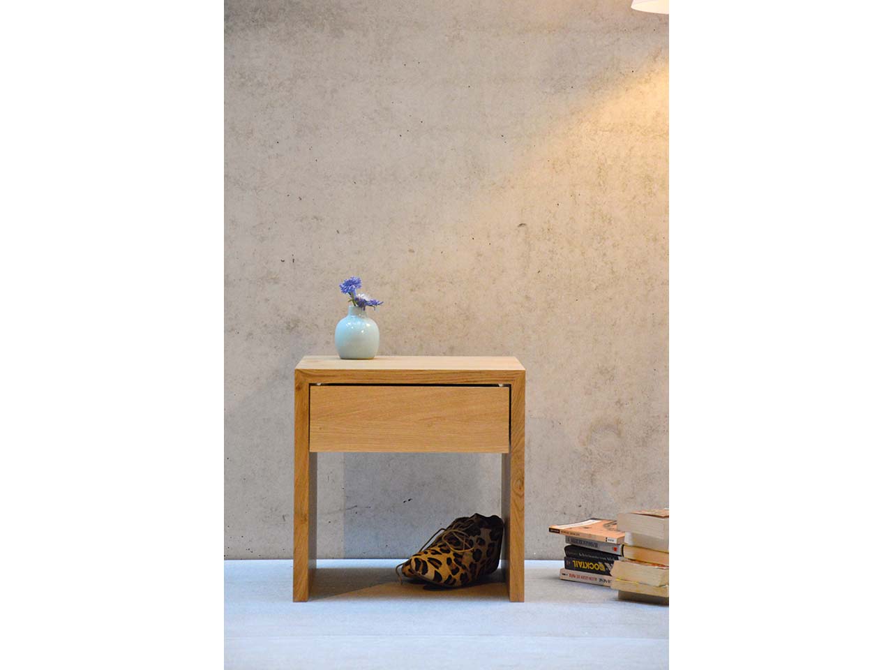 Diese schlichte Schönheit ist neben dem Bett oder dem Sofa Zuhause, der das Möbelstück kann als Beistell- oder als Nachttisch verwendet werden! Das minimalistische Design fügt sich überall ein und sieht einfach natürlich gut aus. Dafür sorgt das sorgfältig verarbeitete, massive Eichenholz, dass mit Öl auf Pflanzenbasis behandelt ist. Das Holz verströmt einen warmen, einladenden Charme. Praktisch ist das robuste, äußerst langlebige Tischchen auch: Neben der großzügigen Ablagefläche verfügt das Möbelstück über eine Schublade, in der verschiedene Dinge verstaut werden können. B 42 x T 42 x H 42 cm.