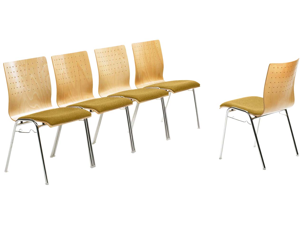 Exzellente Verarbeitung und hochwertige Optik zeichnen diesen Besucherstuhl aus. Die mit Wasserlack lackierte Holzschale sorgt gemeinsam mit der gepolsterten Sitzfläche für einen hervorragenden Sitzkomfort. Dadurch eignet sich der Stapelstuhl ideal für Seminar- oder Konferenzräume. Der Bezug für das Polster ist aus post-consumer Kunststoff hergestellt und dadurch besonders nachhaltig. Optisches Highlight sind die klaren Linien und das Lochraster in der Rückenlehne. Das natürliche Holzdesign wird durch das verchromte 4-Fuß-Gestell perfekt akzentuiert. Der Besucherstuhl ist platzsparend stapelbar und kann mit dem Reihenverbinder im Verbund mit mehreren Stühlen platziert werden.