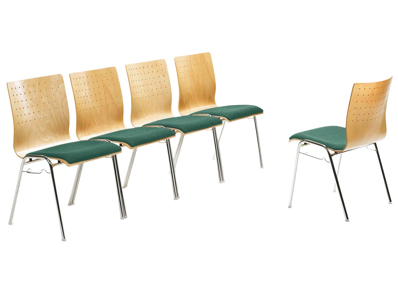 Exzellente Verarbeitung und hochwertige Optik zeichnen diesen Besucherstuhl aus. Die mit Wasserlack lackierte Holzschale sorgt gemeinsam mit der gepolsterten Sitzfläche für einen hervorragenden Sitzkomfort. Dadurch eignet sich der Stapelstuhl ideal für Seminar- oder Konferenzräume. Der Bezug für das Polster ist aus post-consumer Kunststoff hergestellt und dadurch besonders nachhaltig. Optisches Highlight sind die klaren Linien und das Lochraster in der Rückenlehne. Das natürliche Holzdesign wird durch das verchromte 4-Fuß-Gestell perfekt akzentuiert. Der Besucherstuhl ist platzsparend stapelbar und kann mit dem Reihenverbinder im Verbund mit mehreren Stühlen platziert werden.