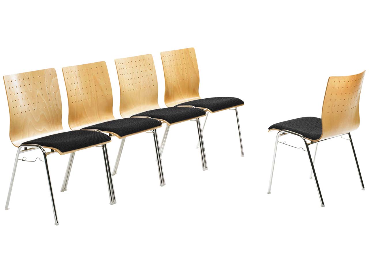 Exzellente Verarbeitung und hochwertige Optik zeichnen diesen Besucherstuhl aus. Die mit Wasserlack lackierte Holzschale sorgt gemeinsam mit der gepolsterten Sitzfläche für einen hervorragenden Sitzkomfort. Dadurch eignet sich der Stapelstuhl ideal für Seminar- oder Konferenzräume. Der Bezug für das Polster ist aus post-consumer Kunststoff hergestellt und dadurch besonders nachhaltig. Optisches Highlight sind die klaren Linien und das Lochraster in der Rückenlehne. Das natürliche Holzdesign wird durch das verchromte 4-Fuß-Gestell perfekt akzentuiert. Der Besucherstuhl ist platzsparend stapelbar und kann mit dem Reihenverbinder im Verbund mit mehreren Stühlen platziert werden.