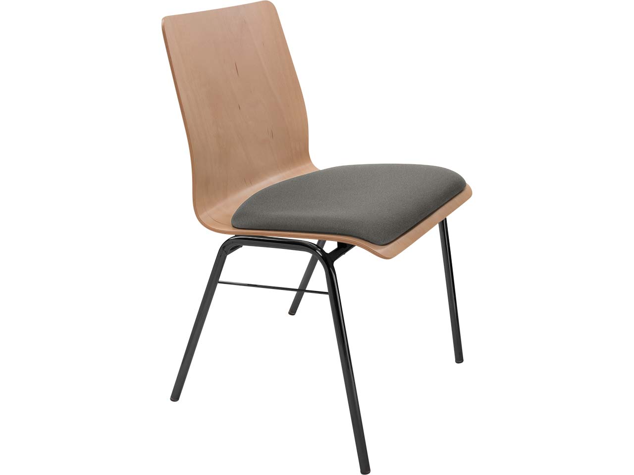 Besucherstuhl "A1" Buche lackiert, Gestell schwarz gepulvert, Steg, Sitzpolster