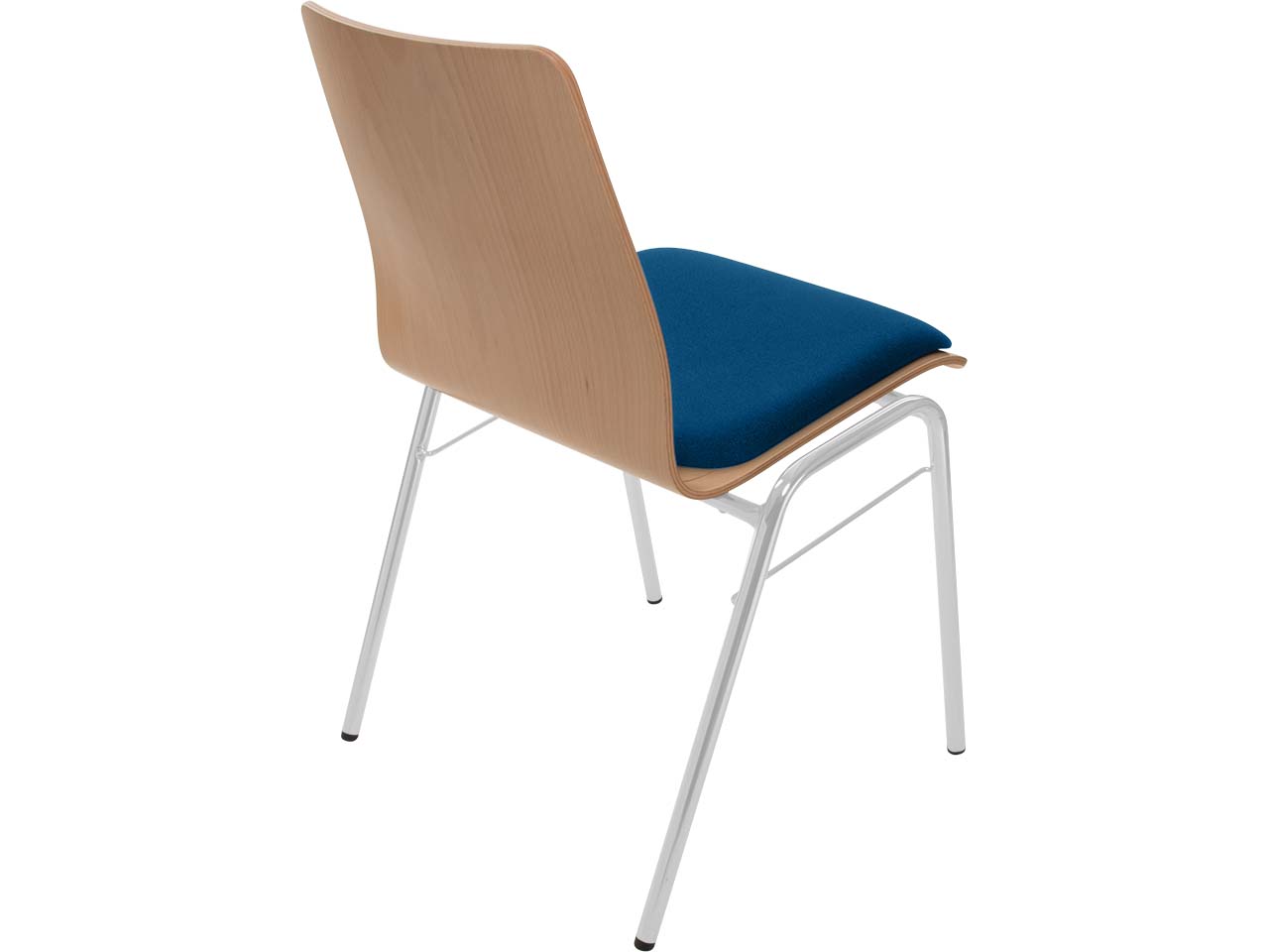 Hoher Komfort und ein Design, das sich sehen lassen kann: Der Besucherstuhl ist mit seinem weichen, austauschbaren Sitzpolster und der minimalistischen Optik ideal für Wartebereiche, Konferenz- oder Seminarräume. Die Polsterung ist auf der Sitzschale aus Buchenholz angebracht. Dieses ist mit Wasserlack nach B1 lackiert, wodurch der Stuhl schwer entflammbar und beständig gegen Desinfektionsmittel ist. Die platzsparende Unterbringung wird durch die Stapelbarkeit erreicht. Bis zu 12 Stühle können gestapelt werden. Das Gestell besteht aus pulverbeschichtetem Stahl und ist strapazierfähig.