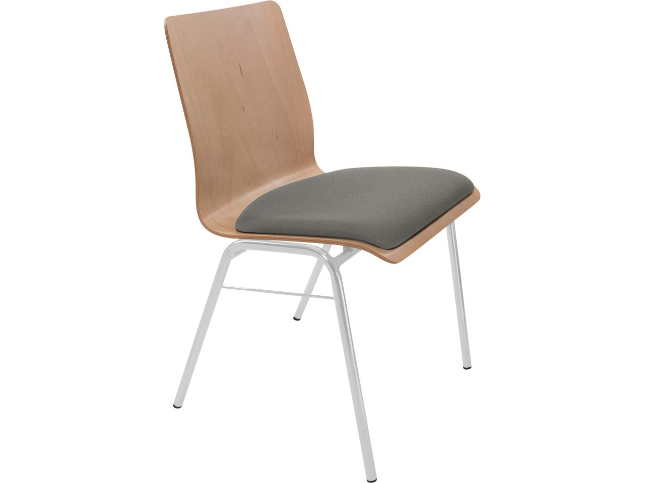 Besucherstuhl "A1" Buche lackiert, Gestell silber gepulvert, Steg, Sitzpolster