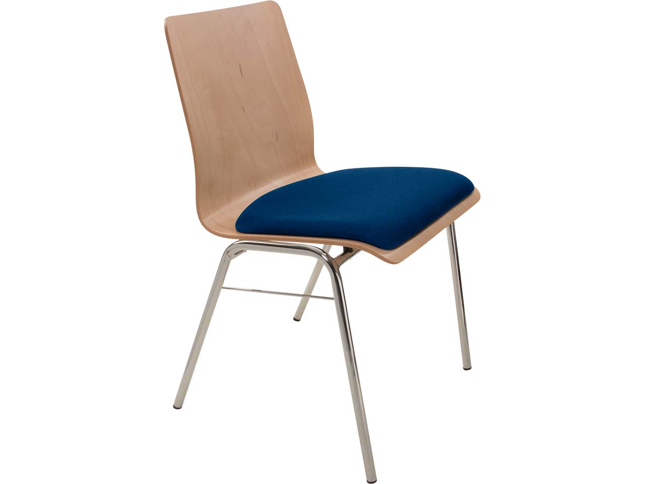 Besucherstuhl "A1" Buche lackiert, Gestell verchromt, Steg, Sitzpolster