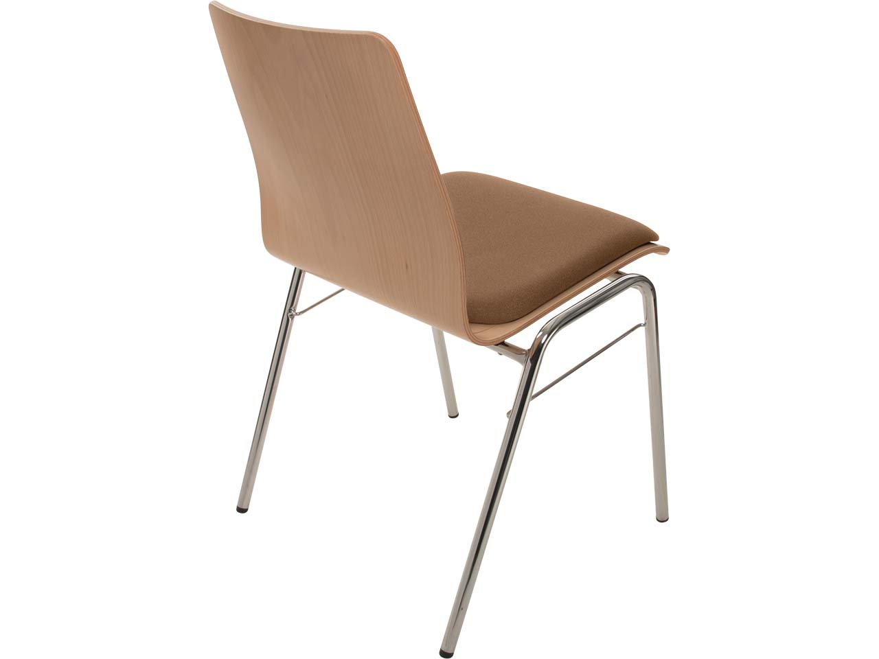 Hoher Komfort beim Sitzen und ein klares Design, das in jeden Konferenz- oder Seminarraum passt: Der Besucherstuhl mit Sitzpolster ist eine echte Bereicherung. Die Sitzschale aus Buchenholz ist mit Wasserlack nach B1 lackiert, wodurch das Sitzmöbel eine schwer entflammbare, gegen Desinfektionsmittel beständige Qualität erhält. Das Sitzpolster ist angenehm weich und kann bei Bedarf ausgetauscht und erneuert werden. Das verchromte Stahlgestell sorgt für viel Stabilität. Der Besucherstuhl lässt sich bis zu 12-fach stapeln und lässt sich so platzsparend unterbringen.