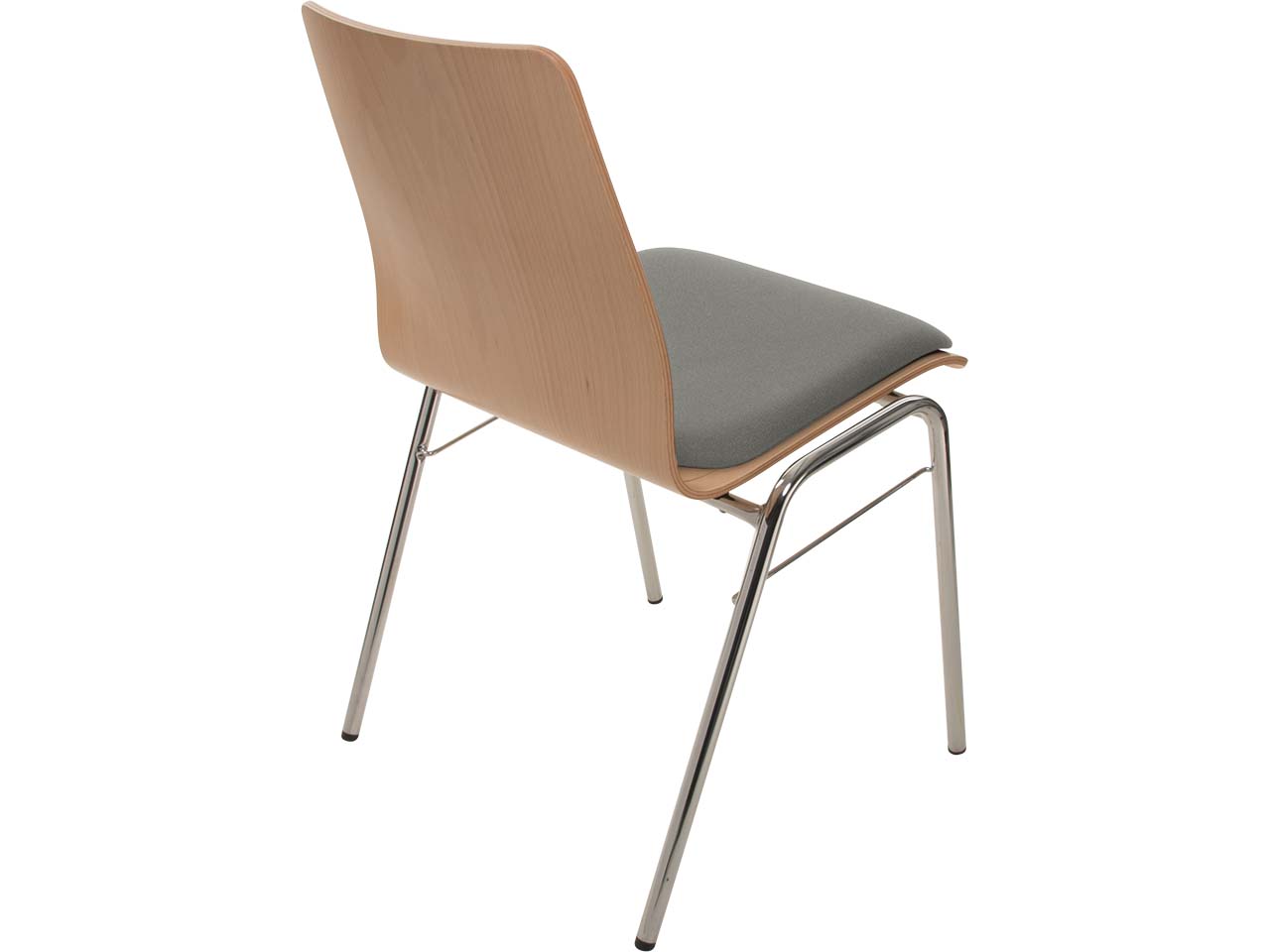 Hoher Komfort beim Sitzen und ein klares Design, das in jeden Konferenz- oder Seminarraum passt: Der Besucherstuhl mit Sitzpolster ist eine echte Bereicherung. Die Sitzschale aus Buchenholz ist mit Wasserlack nach B1 lackiert, wodurch das Sitzmöbel eine schwer entflammbare, gegen Desinfektionsmittel beständige Qualität erhält. Das Sitzpolster ist angenehm weich und kann bei Bedarf ausgetauscht und erneuert werden. Das verchromte Stahlgestell sorgt für viel Stabilität. Der Besucherstuhl lässt sich bis zu 12-fach stapeln und lässt sich so platzsparend unterbringen.