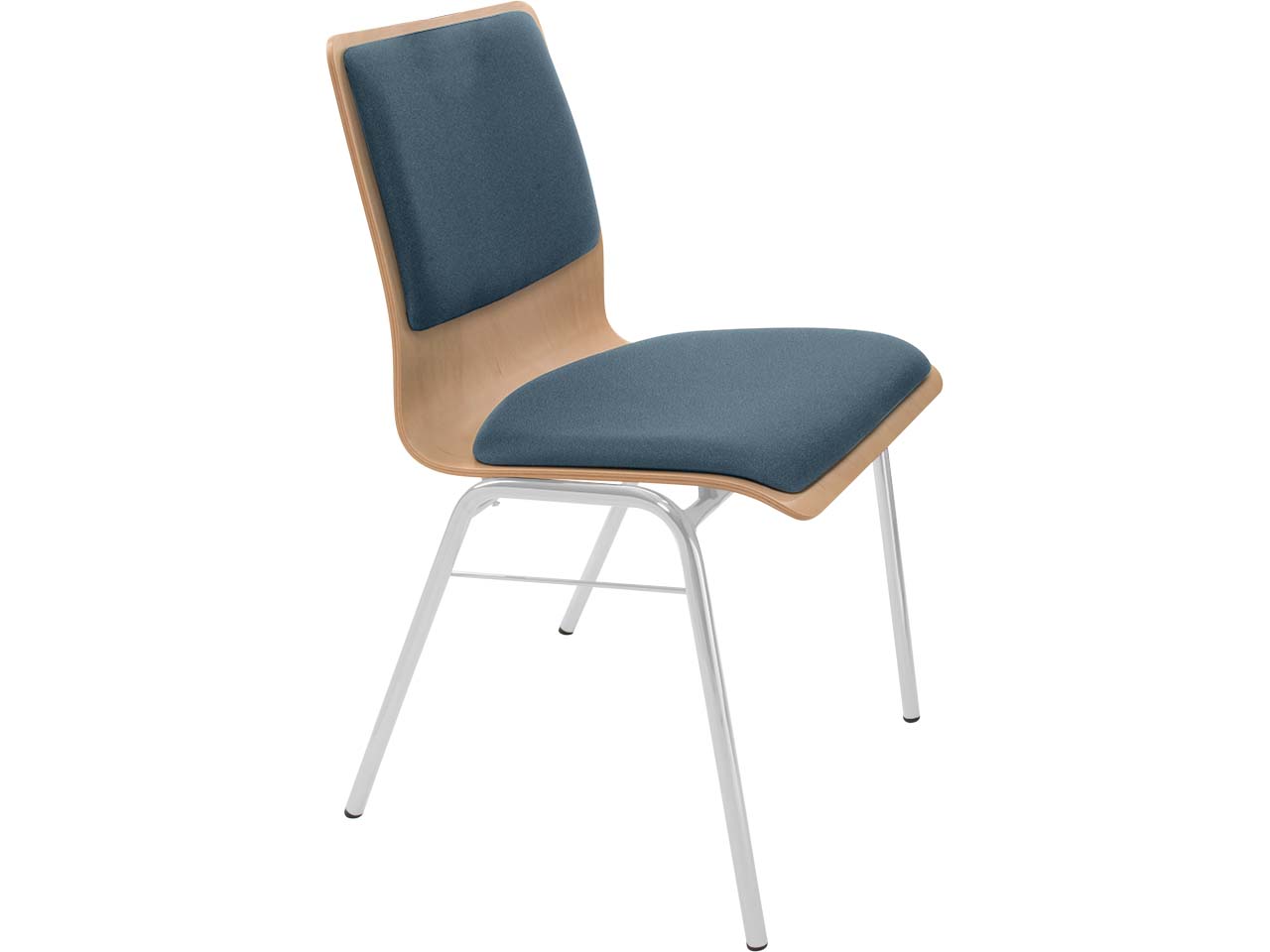 Ein komfortabler und stilvoller Besucherstuhl - perfekt für Wartebereiche, Konferenz- oder Seminarräume. Mit seinem weichen, austauschbaren Sitzpolster und der minimalistischen Optik kann er vielseitig eingesetzt werden. Die Polsterung ist am Rücken und an der Sitzschale aus Buchenholz angebracht. Dieses ist mit Wasserlack nach B1 lackiert, wodurch der Stuhl schwer entflammbar und beständig gegen Desinfektionsmittel ist. Die platzsparende Unterbringung wird durch die Stapelbarkeit erreicht. Bis zu 12 Stühle können gestapelt werden. Das Gestell besteht aus pulverbeschichtetem Stahl und ist strapazierfähig.