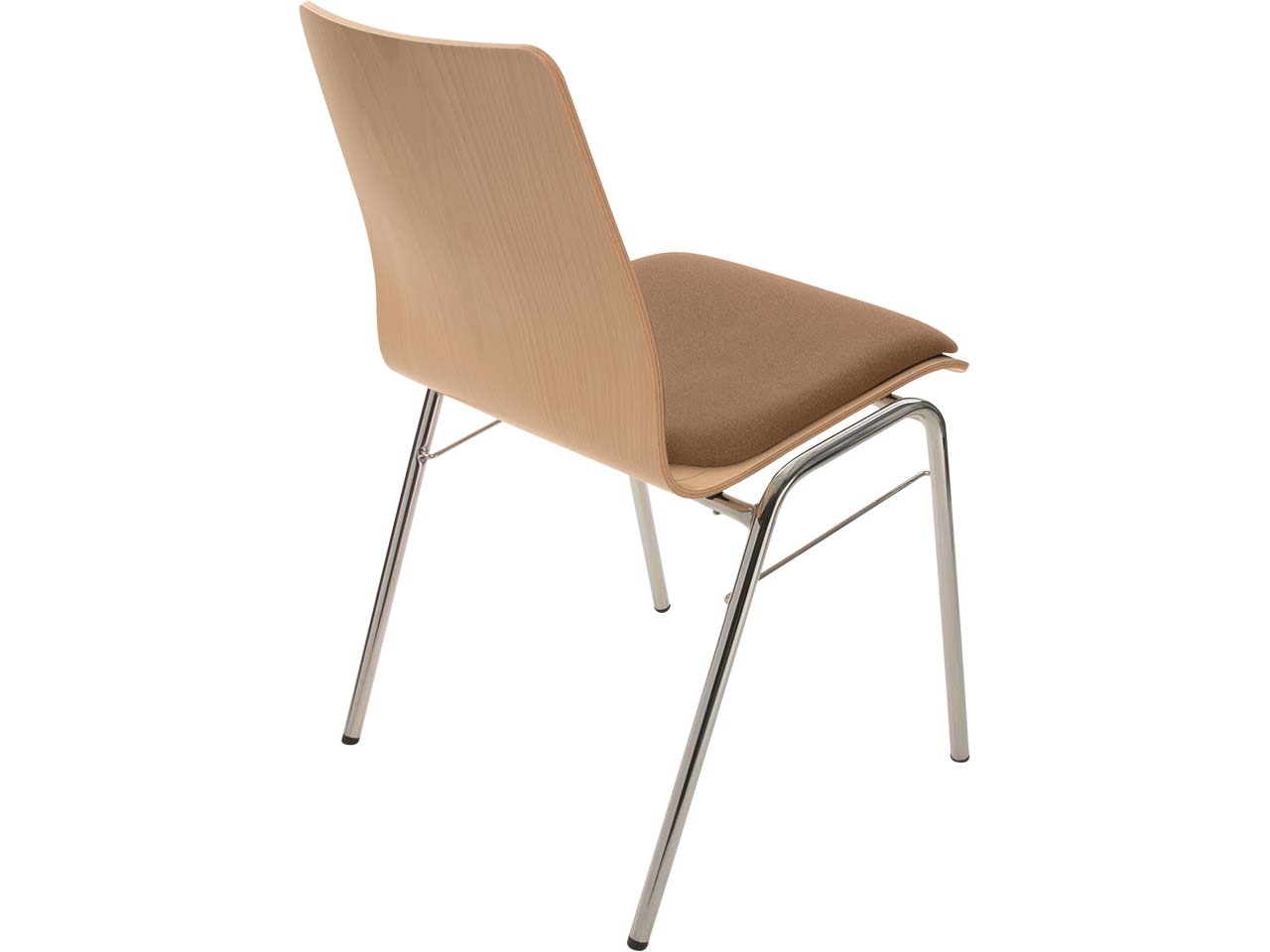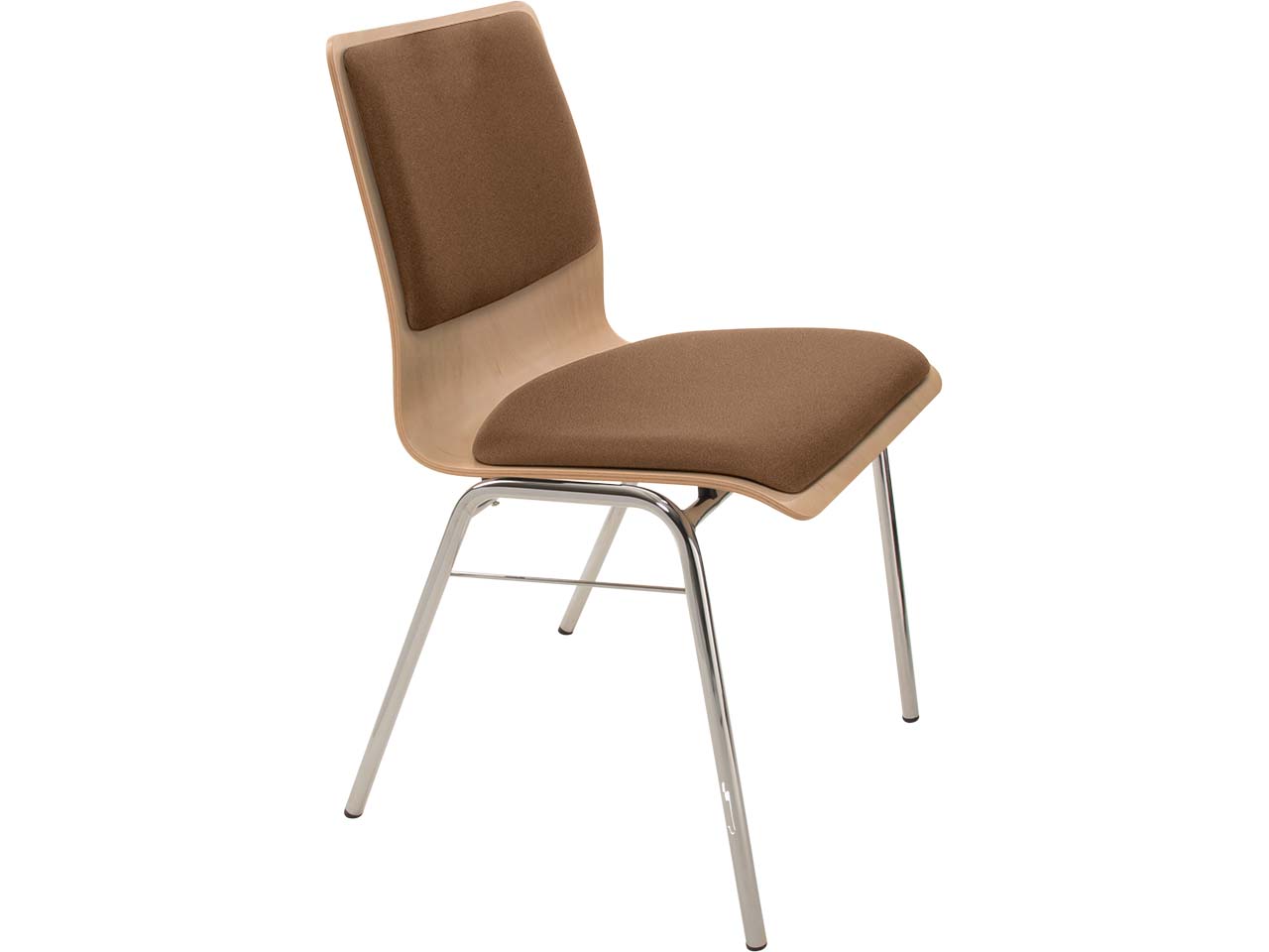 Eine überaus bequeme Sitzgelegenheit mit einem klaren und ansprechenden Design, die sich perfekt in jeden Konferenz- oder Seminarraum einfügt - das ist der Besucherstuhl mit gepolsterter Sitzfläche und Rückenlehne. Die Sitzschale aus Buchenholz ist mit Wasserlack nach B1 lackiert, wodurch das Sitzmöbel eine schwer entflammbare, gegen Desinfektionsmittel beständige Qualität erhält. Die Polsterung ist angenehm weich und kann bei Bedarf ausgetauscht und erneuert werden. Dank des verchromten Stahlgestells ist der Stuhl äußerst stabil. Darüber hinaus lassen sich bis zu 12 Stühle platzsparend stapeln.