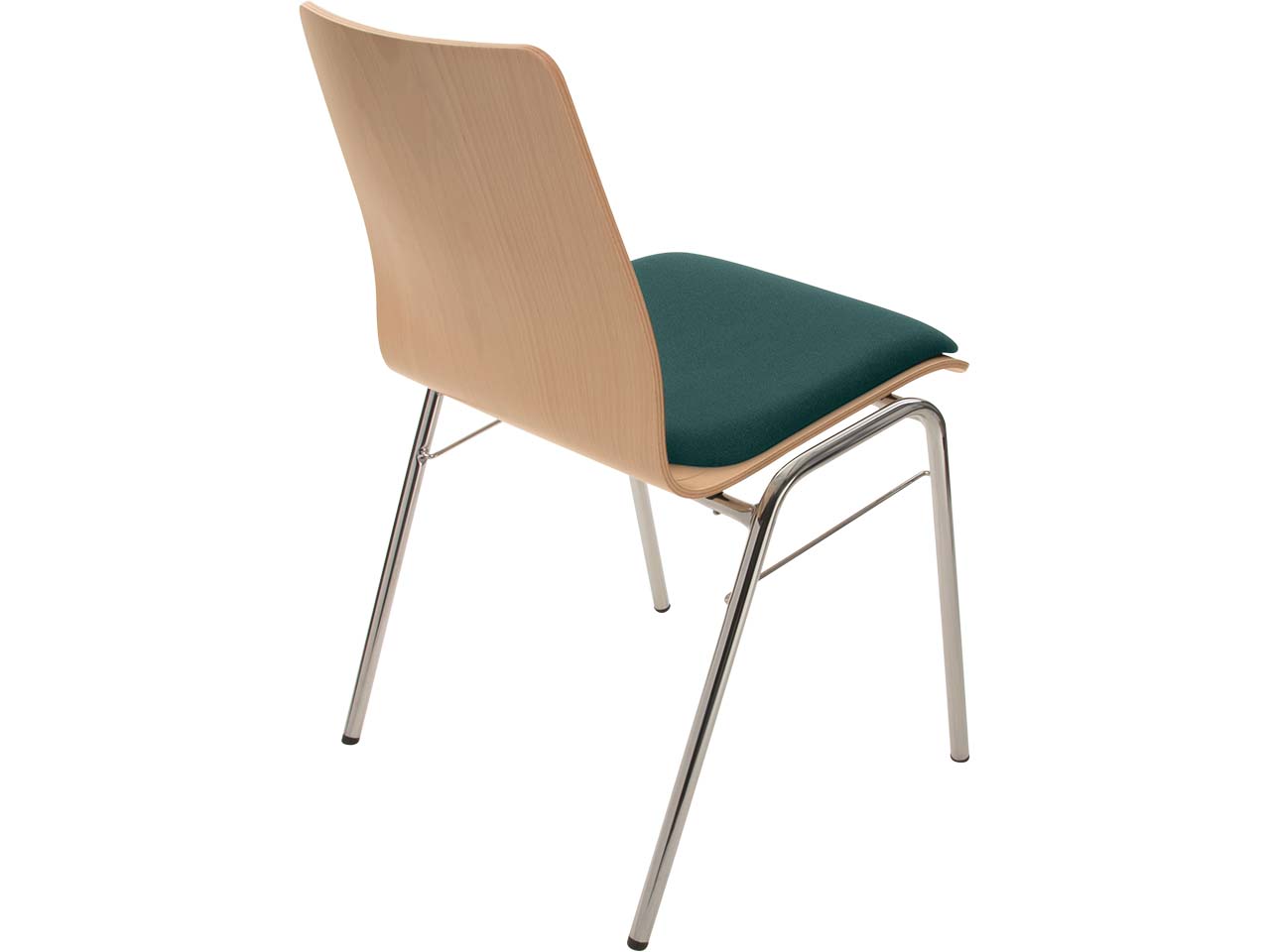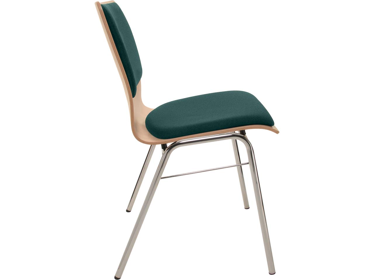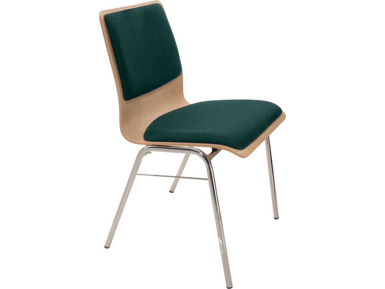 Eine überaus bequeme Sitzgelegenheit mit einem klaren und ansprechenden Design, die sich perfekt in jeden Konferenz- oder Seminarraum einfügt - das ist der Besucherstuhl mit gepolsterter Sitzfläche und Rückenlehne. Die Sitzschale aus Buchenholz ist mit Wasserlack nach B1 lackiert, wodurch das Sitzmöbel eine schwer entflammbare, gegen Desinfektionsmittel beständige Qualität erhält. Die Polsterung ist angenehm weich und kann bei Bedarf ausgetauscht und erneuert werden. Dank des verchromten Stahlgestells ist der Stuhl äußerst stabil. Darüber hinaus lassen sich bis zu 12 Stühle platzsparend stapeln.