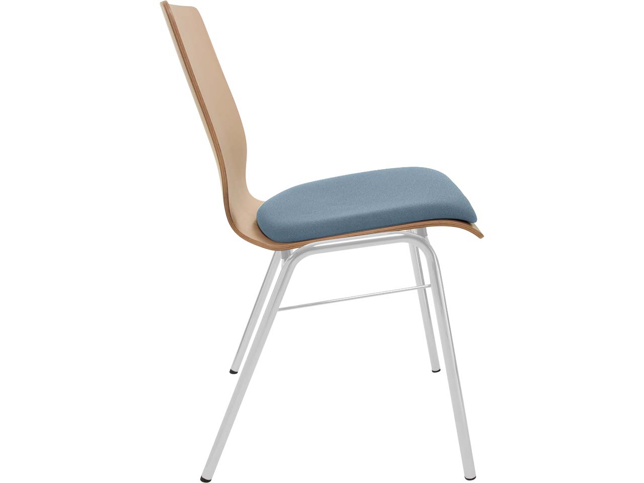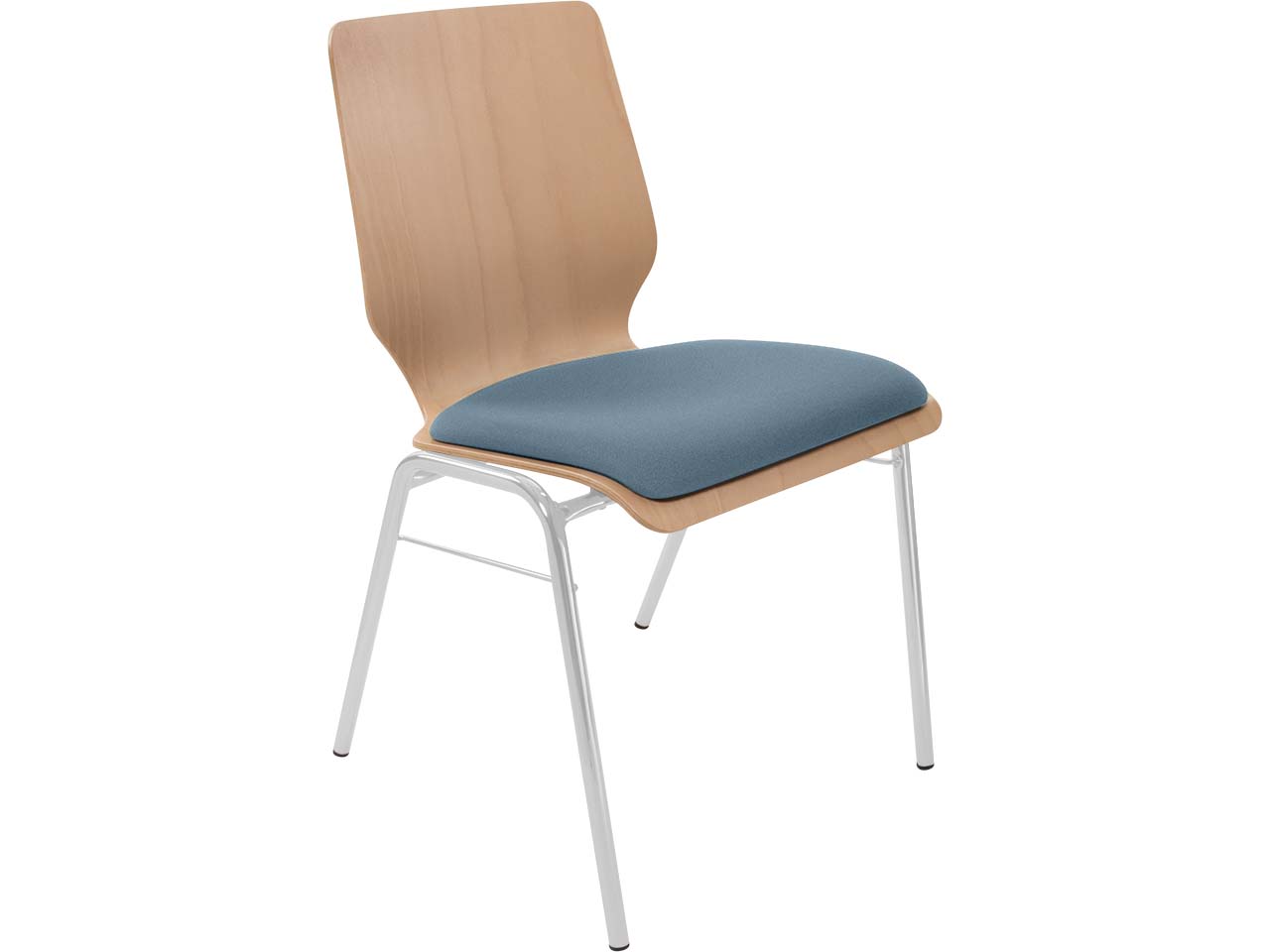 Sanft geschwungene Formsprache und ein Sitzpolster für mehr Komfort: Der Besucherstuhl eignet sich ideal für Wartebereiche, Konferenz- und Seminarräume. Die Sitzschale ist aus Buchenholz gefertigt, das mit Wasserlack nach B1 lackiert ist. Dadurch ist der Stuhl schwer entflammbar und beständig gegen Desinfektionsmittel. Der Besucherstuhl ist 12-fach stapelbar und damit einfach und platzsparend unterzubringen. Das pulverbeschichtete Stahlgestell sorgt für viel Stabilität beim Sitzen.