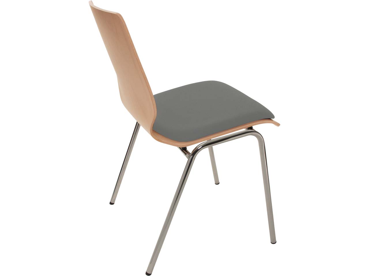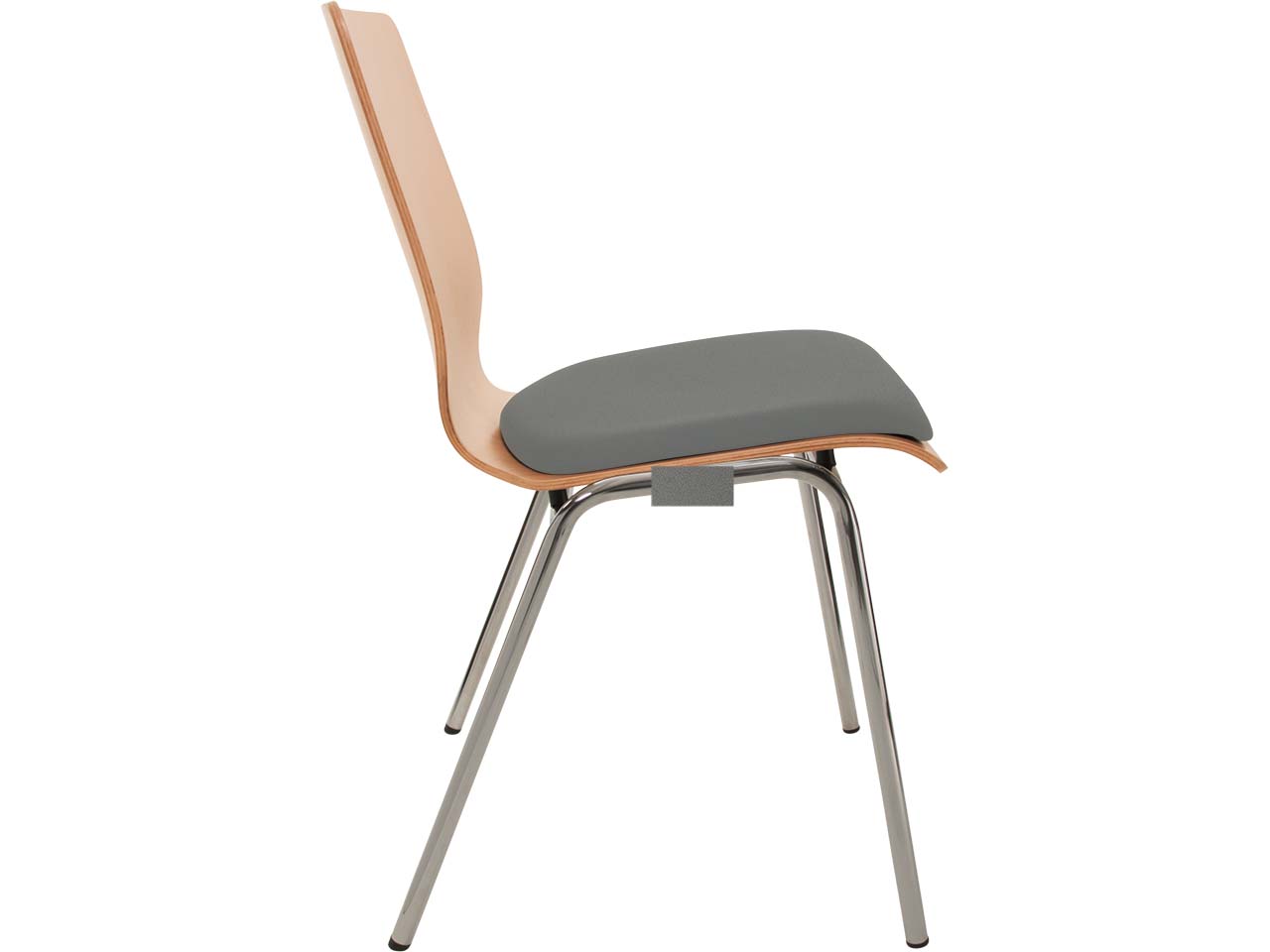 Das weiche Sitzpolster zeichnet diesen hochwertigen Besucherstuhl aus. Da das Polster bei Bedarf austauschbar ist, kann der Stuhl über einen langen Zeitraum benutzt werden. Basis für den Komfort bildet die Konstruktion aus Buchenholz, die mit Wasserlack nach B1 lackiert ist. Die Lackierung sorgt dafür, dass das Sitzmöbel schwer entflammbar und beständig gegen Desinfektionsmittel ist. Durch die sanften Formen im minimalistischen Design wirkt der Stuhl in jedem Konferenz- oder Seminarraum sowie in Wartebereichen sehr harmonisch. Stabilität entsteht durch das verchromte Stahlgestell.