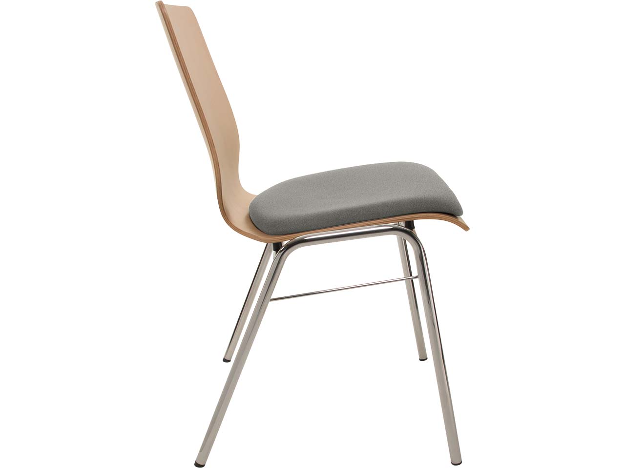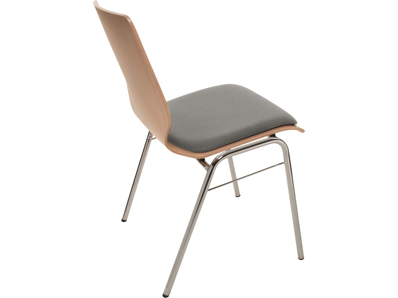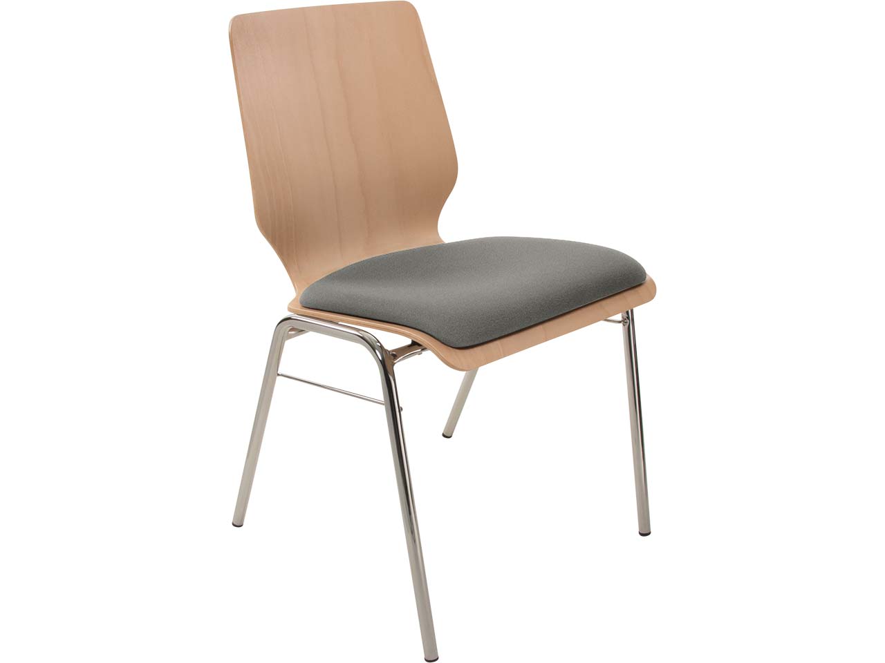 Dieser Besucherstuhl ist mit seiner sanften, minimalistischen Formgebung ideal für Konferenz- und Seminarräume oder Wartebereiche. Exzellente Stabilität entsteht durch das verchromte Stahlgestell und die Sitzfläche aus Buchenholz. Dieses ist mit Wasserlack nach B1 lackiert, wodurch der Stuhl schwer entflammbar und beständig gegen Desinfektionsmittel ist. Das Sitzpolster, das weich ist und sich austauschen lässt, erhöht den Sitzkomfort noch mehr. Durch die Stapelbarkeit ist der Besucherstuhl besonders platzsparend in der Unterbringung.