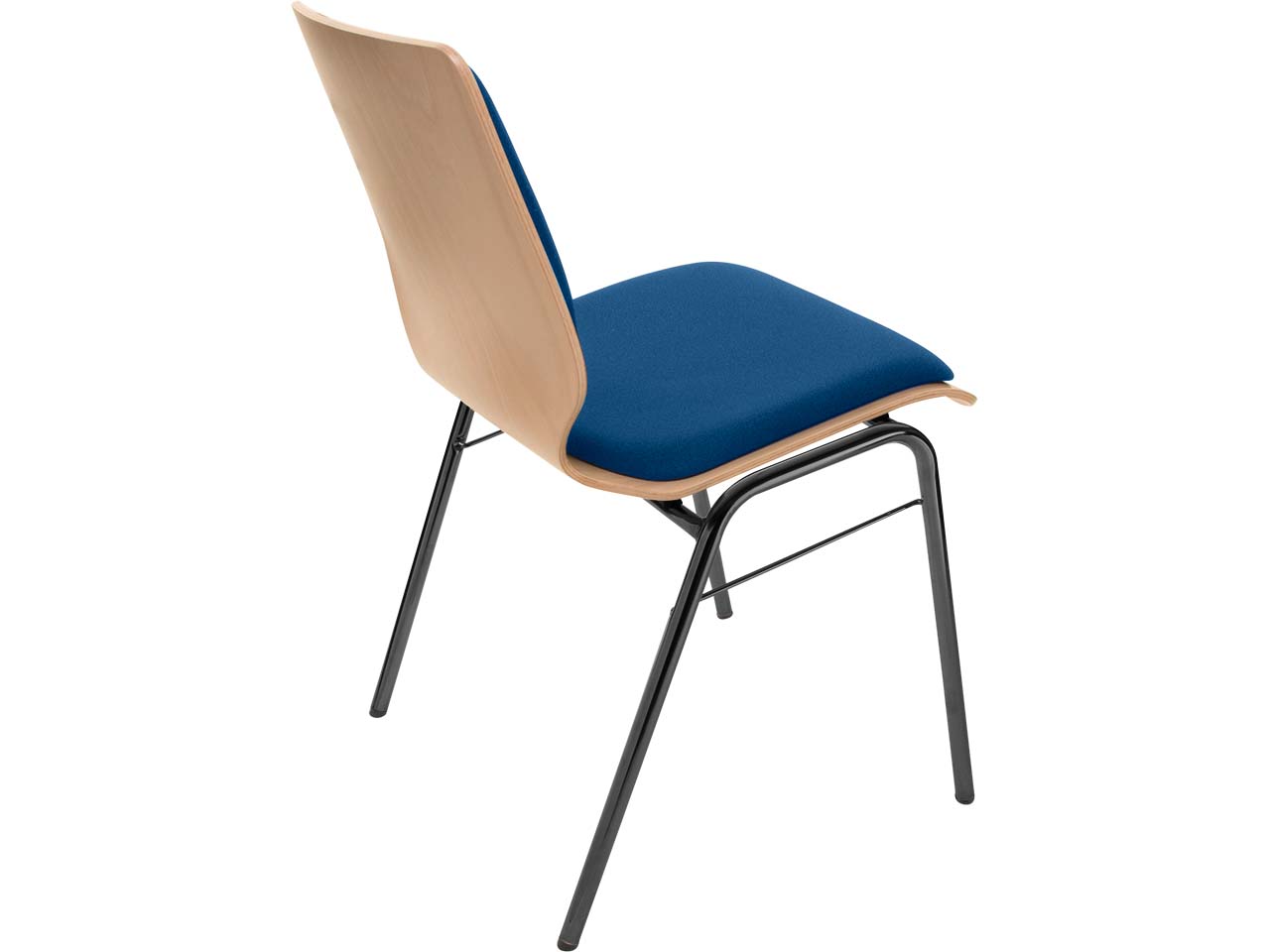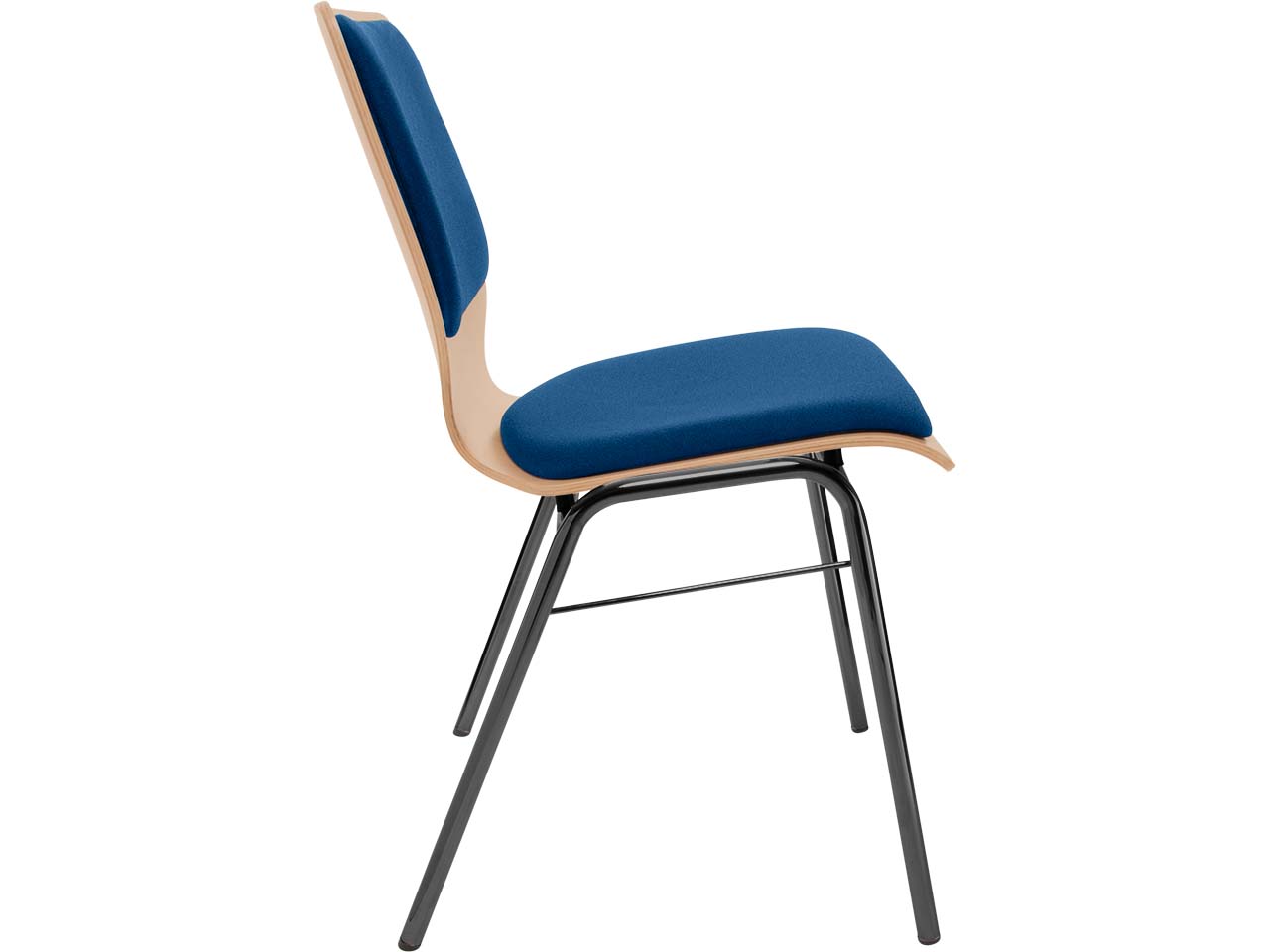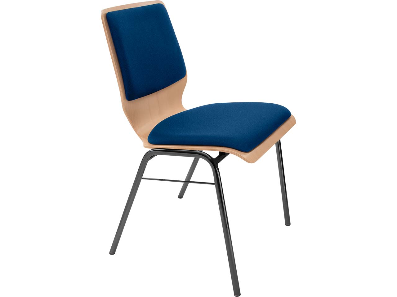 Das harmonische Design des Besucherstuhls passt in verschiedene Raumkonzepte. Das macht ihn ideal für Seminar- und Konferenzräume sowie Wartebereiche. Um einen hohen Sitzkomfort zu gewährleisten, ist das Möbelstück mit einer Polsterung an Sitzfläche und Rückenlehne versehen. Bei Bedarf kann diese ausgetauscht werden, was die Langlebigkeit des Stuhls erhöht. Die Polsterung wird auf eine Schale aus Buchenholz angebracht, welche mit Wasserlack nach B1 lackiert ist. Der Besucherstuhl mit Steg ist dadurch schwer entflammbar und beständig gegen Desinfektionsmittel. Das pulverbeschichtete Stahlgestell betont die stabile und strapazierfähige Qualität des Stuhls zusätzlich.