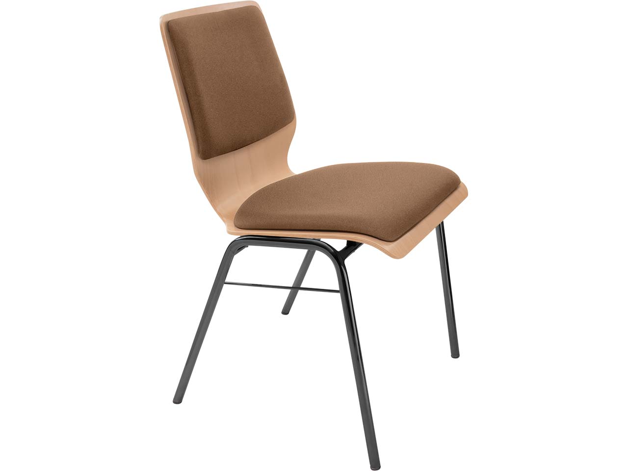 Besucherstuhl "A2" Buche lackiert, Gestell schwarz gepulvert, Steg, Sitz- und Rückenpolster