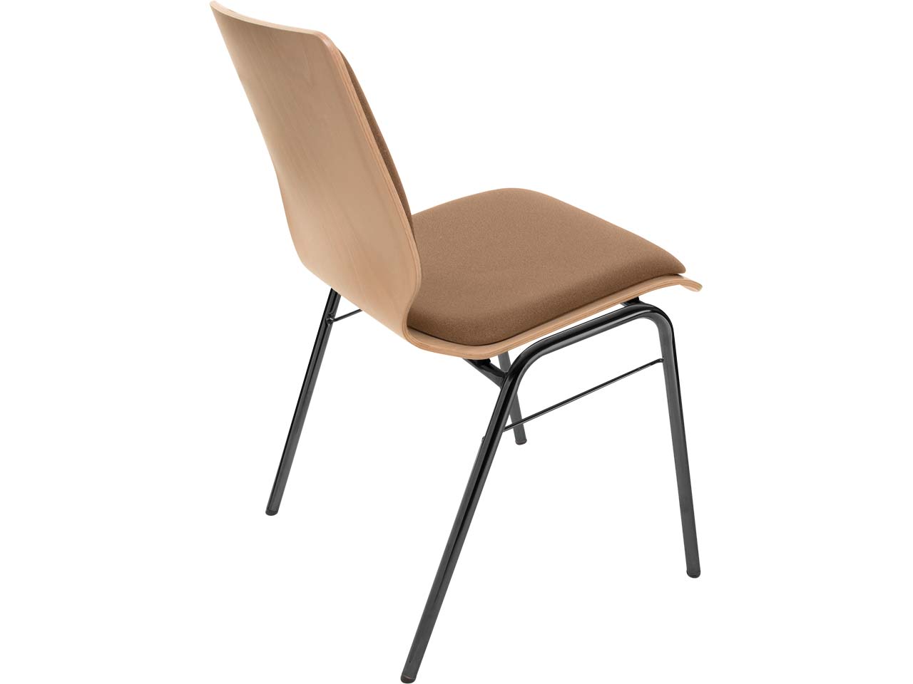 Das harmonische Design des Besucherstuhls passt in verschiedene Raumkonzepte. Das macht ihn ideal für Seminar- und Konferenzräume sowie Wartebereiche. Um einen hohen Sitzkomfort zu gewährleisten, ist das Möbelstück mit einer Polsterung an Sitzfläche und Rückenlehne versehen. Bei Bedarf kann diese ausgetauscht werden, was die Langlebigkeit des Stuhls erhöht. Die Polsterung wird auf eine Schale aus Buchenholz angebracht, welche mit Wasserlack nach B1 lackiert ist. Der Besucherstuhl mit Steg ist dadurch schwer entflammbar und beständig gegen Desinfektionsmittel. Das pulverbeschichtete Stahlgestell betont die stabile und strapazierfähige Qualität des Stuhls zusätzlich.