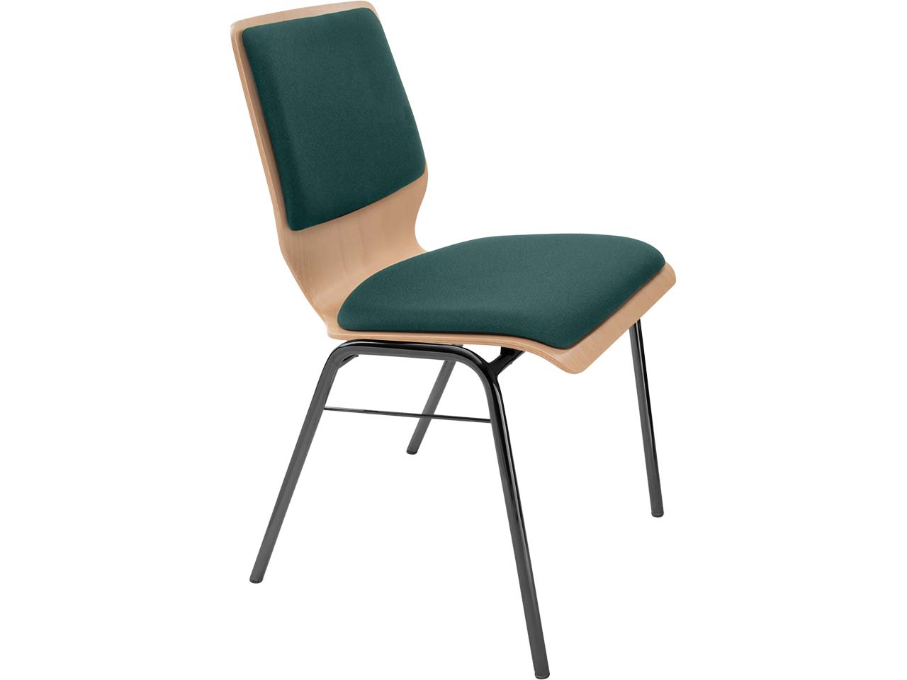 Besucherstuhl "A2" Buche lackiert, Gestell schwarz gepulvert, Steg, Sitz- und Rückenpolster