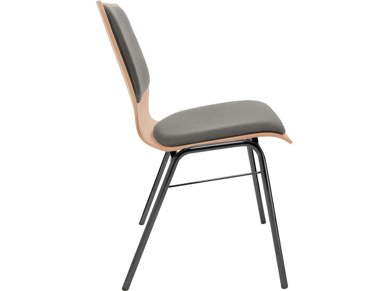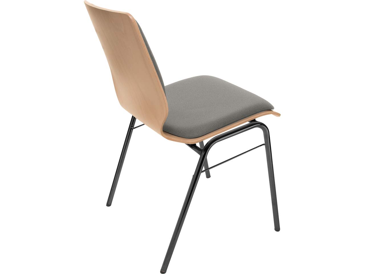 Das harmonische Design des Besucherstuhls passt in verschiedene Raumkonzepte. Das macht ihn ideal für Seminar- und Konferenzräume sowie Wartebereiche. Um einen hohen Sitzkomfort zu gewährleisten, ist das Möbelstück mit einer Polsterung an Sitzfläche und Rückenlehne versehen. Bei Bedarf kann diese ausgetauscht werden, was die Langlebigkeit des Stuhls erhöht. Die Polsterung wird auf eine Schale aus Buchenholz angebracht, welche mit Wasserlack nach B1 lackiert ist. Der Besucherstuhl mit Steg ist dadurch schwer entflammbar und beständig gegen Desinfektionsmittel. Das pulverbeschichtete Stahlgestell betont die stabile und strapazierfähige Qualität des Stuhls zusätzlich.